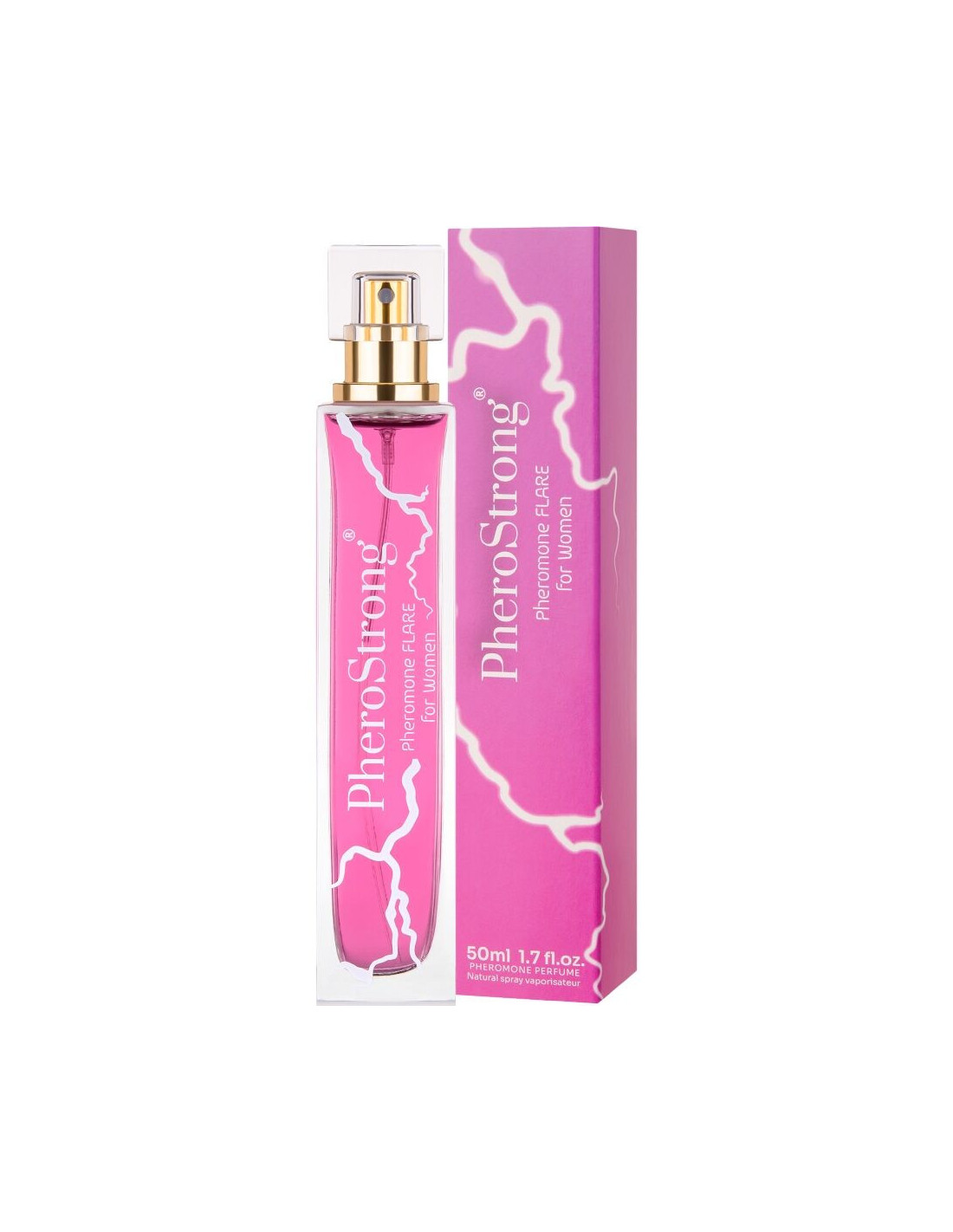 Flare for Women by PheroStrong® is a passionate and sophisticated fragrance, created for the woman who leads with intensity and elegance. It opens with a burst of pink pepper and bergamot—bright, sparkling and full of confidence. At its heart lies a rich floral blend of Bulgarian rose, Turkish rose and Egyptian jasmine: lush, romantic and deeply expressive. The base of creamy Madagascan vanilla and warm amber delivers a velvety finish that lingers beautifully on the skin. Flare for Women is not just a perfume: it is an aura, a presence, a sensual signature for bold, unapologetic women.