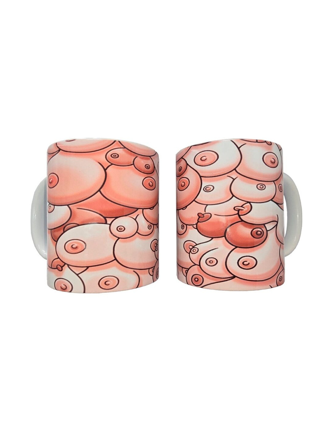 Pagamintas iš aukštos kokybės keramikos, šis puodelis yra papuoštas linksmais, erotiniais, krūtų įkvėptais piešiniais visomis spalvomis. Jo balta rankena suteikia elegantišką ir kontrastingą akcentą, idealų tiems, kurie mėgsta detales su asmenybe.