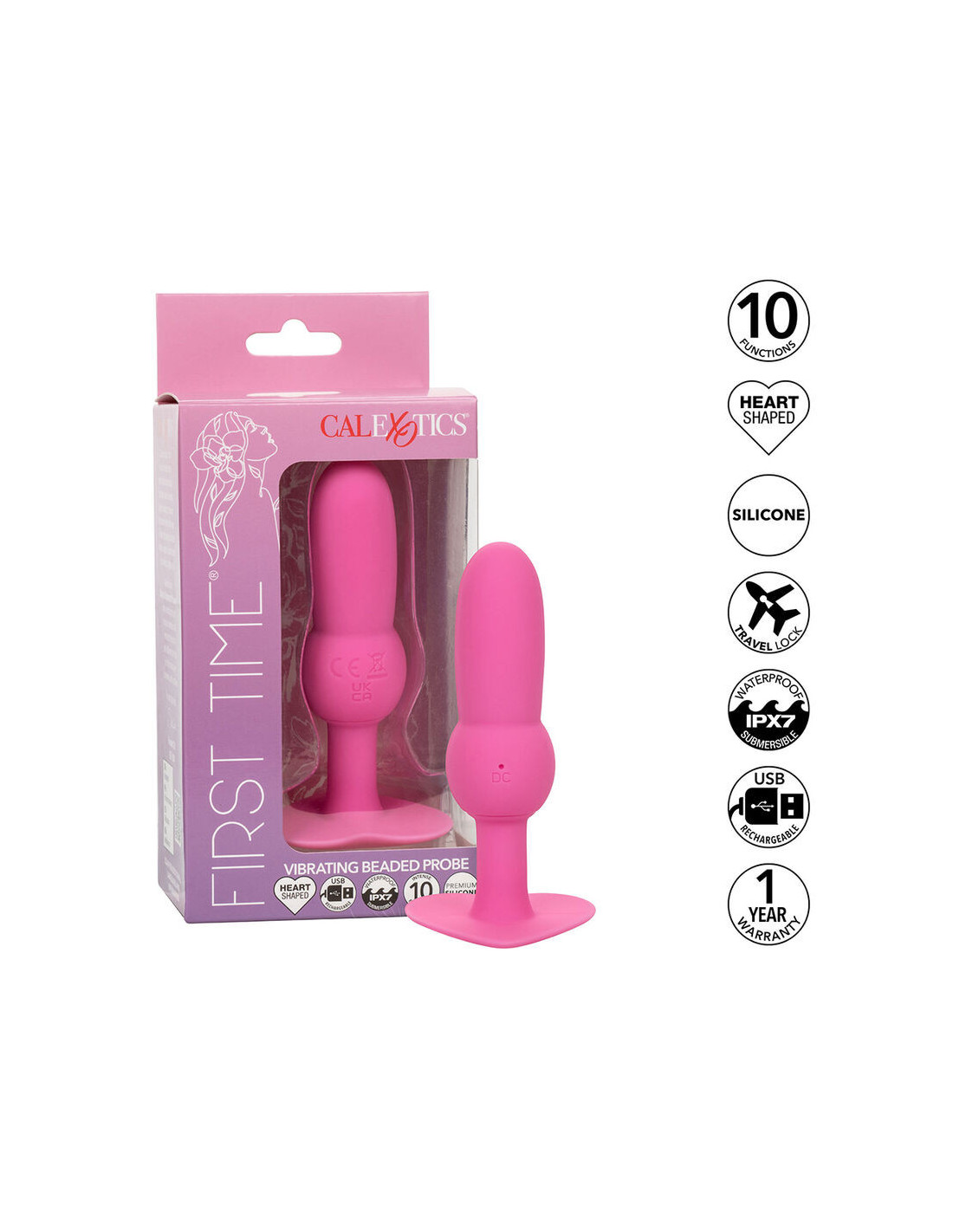 CALEXOTICS - PIRMĄ KARTĄ NAUDOJAMAS ANALINIS KAIŠTELIS SU KAROLIUKAIS, 10 VIBRAVIMŲ, ROŽINIS