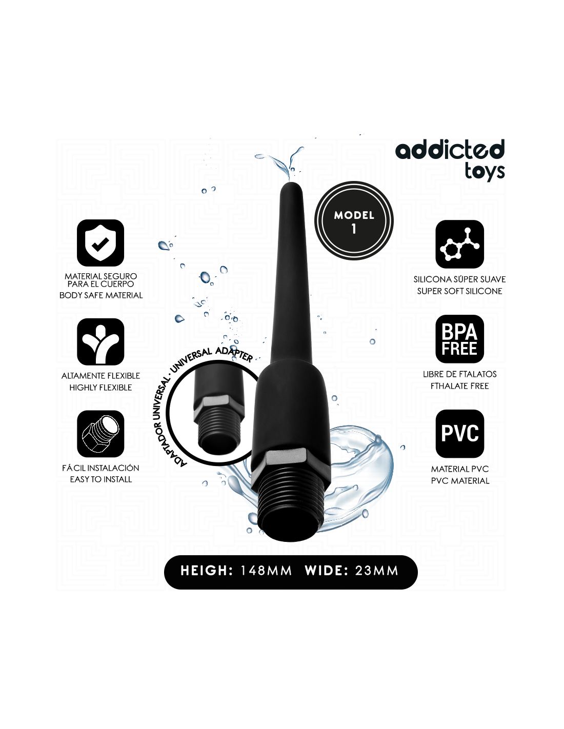 ADDICTED TOYSTinkamai pasiruošę tyrinėkite be ribų. Intymi higiena yra raktas į tai, kad galėtumėte mėgautis analiniais malonumais iki galo, o su „Addicted Toys“ analiniu valikliu užtikrinsite gilų, saugų ir be rūpesčių valymą. Šis 1 modelis , priklausantis 6 skirtingų dizainų asortimentui, yra sukurtas taip, kad būtų patogus, minkštas ir veiksmingas jūsų kasdienės ar prieš žaidimus atliekamos intymios rutinos dalis. Pagamintas iš aukščiausios kokybės medžiagų, tokių kaip lankstus PVC ir itin minkštas silikonas, šis priedas yra visiškai saugus kūnui ir be ftalatų, atitinkantis aukštus higienos standartus. Dėl universalaus adapterio jis suderinamas su dauguma dušo sistemų, todėl jį lengva sumontuoti per kelias sekundes ir užtikrinamas praktiškas bei be rūpesčių naudojamas prietaisas.