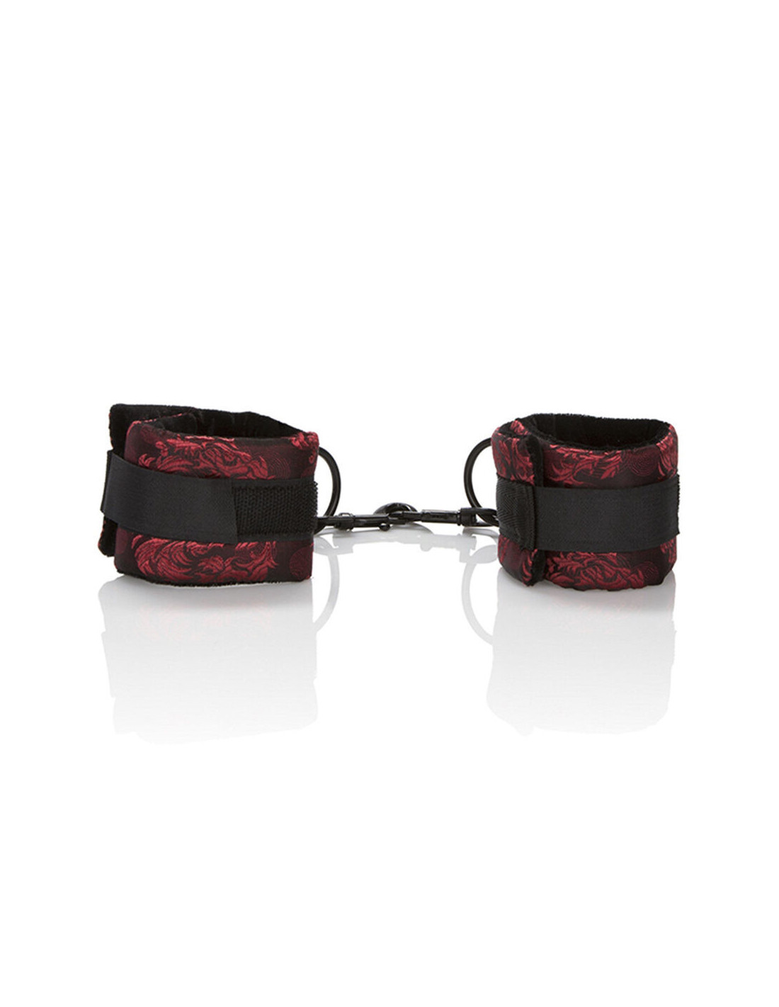 Išbandykite dominavimą ir paklusnumą su „Scandal Universal Cuff Set“ – keturiais minkštais, reguliuojamais rankogaliais iš prabangios raudonos ir juodos brokato medžiagos. Minkštas, dvigubai paminkštintas vidus užtikrina komfortą, o „Velcro“ stiliaus užsegimai užtikrina saugų prigludimą prie riešų ar kulkšnių. Puikiai tinka pradedantiesiems arba patyrusiems žaidėjams, ieškantiems kūrybiško žaidimo suvaržymo.