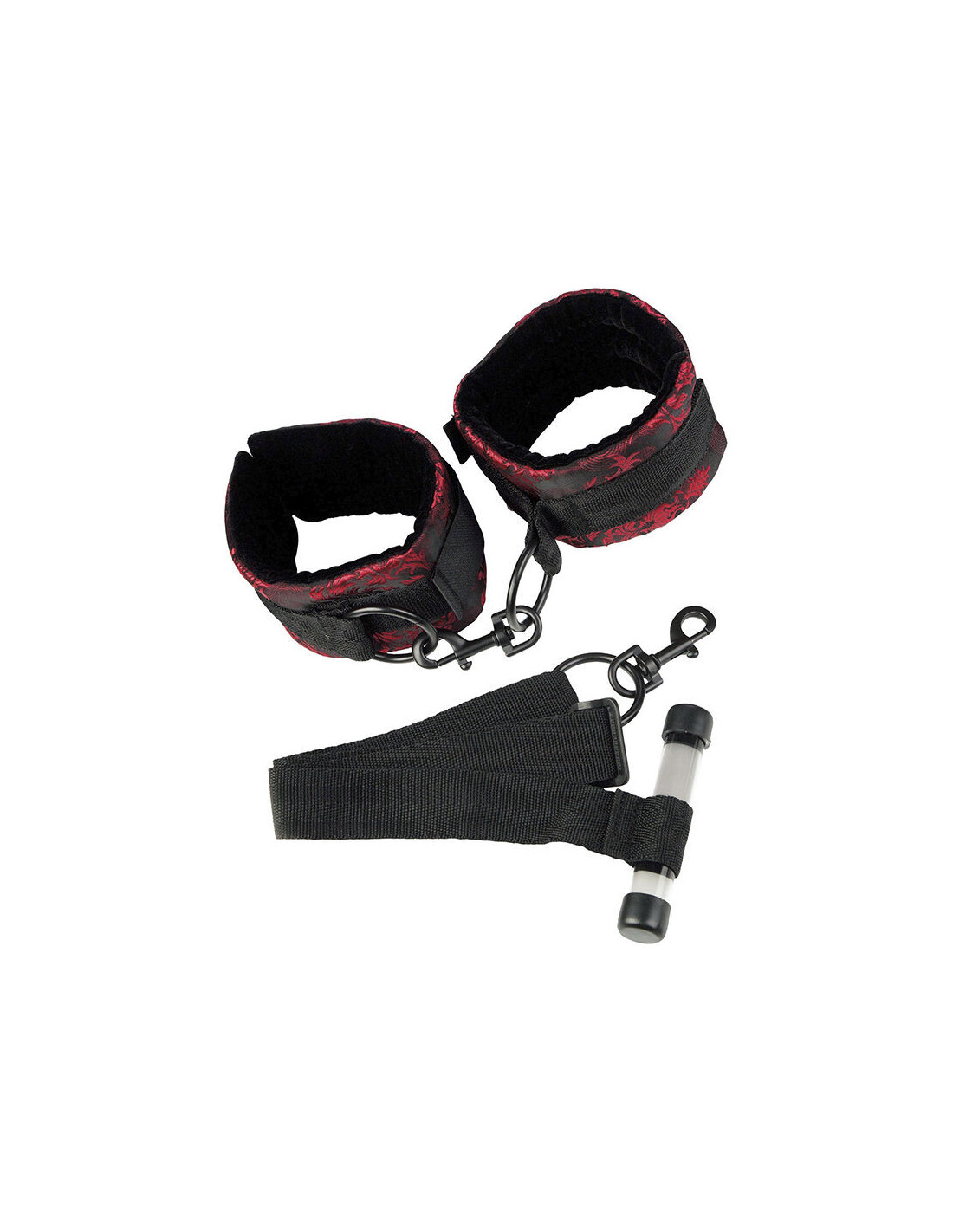 Trokštate kontrolės? „Scandal Over the Door Cuffs“ rankogaliai leidžia jums pasiduoti stilingai. Šie pilnai reguliuojami rankogaliai uždedami ant bet kokių standartinių durų ir akimirksniu paverčia jūsų erdvę aistros žaidimų aikštele. Pamušalas itin minkštas, pliušinis, o aptrauktas ryškiu raudonai juodu dizainerio audiniu, jie suteikia ir prabangos, ir suvaržymo. Nesvarbu, ar jūsų partneris jus traukia iš už nugaros, ar be galo erzina, kol esate bejėgiškai pririšti, patirtis yra tokia pat patogi, kaip ir jaudinanti.