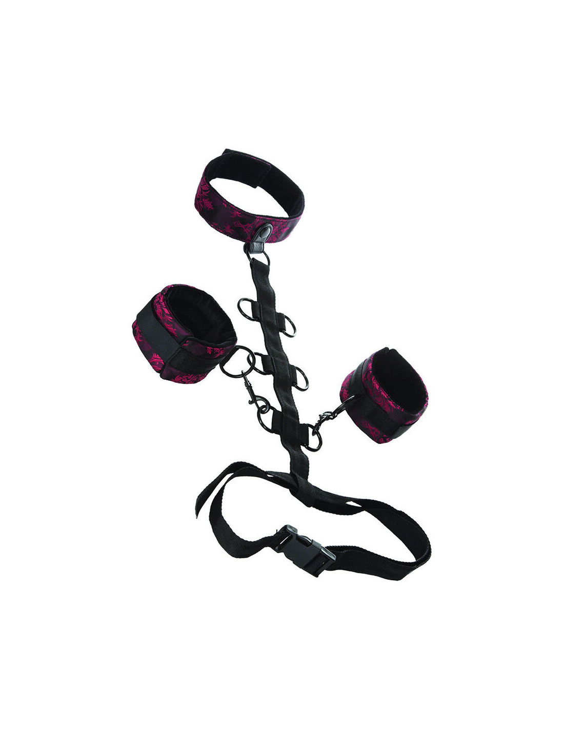 Apgaubkite save jausmingu pasidavimu su „Scandal Collar“ kūno suvaržymu. Šis įspūdingas suvaržymas pasižymi prabangia apykakle, nuimamais rankogaliais ir keliais surišimo būdais – priekyje arba gale. Trys suvaržymo lygiai leidžia jūsų dominuojančiam asmeniui nuspręsti, kiek laisvės mėgausitės.