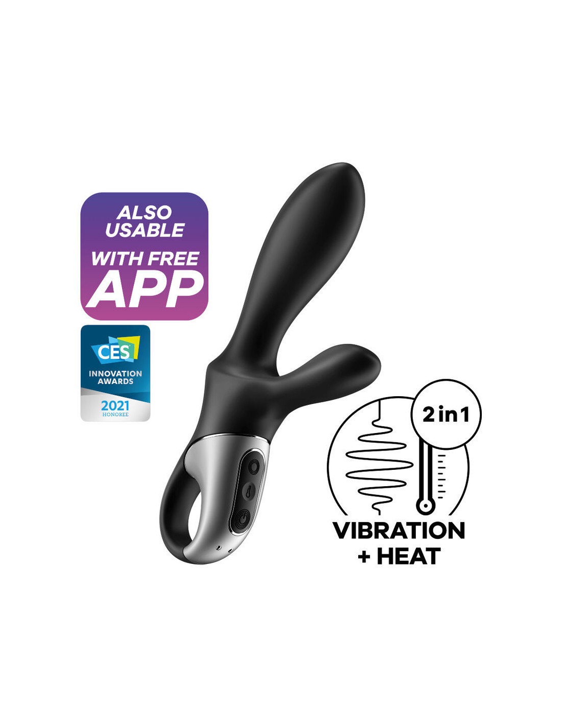 SATISFYER CONNECTSu užlenkta stimuliatoriaus dalimi „Heat Climax +“ stimuliuoja ir prostatą, ir jautrų tarpvietės audinį. Du varikliai aktyvuoja stiprią vibraciją, o silikono šildymo funkcija garantuoja tikroviškus pojūčius.