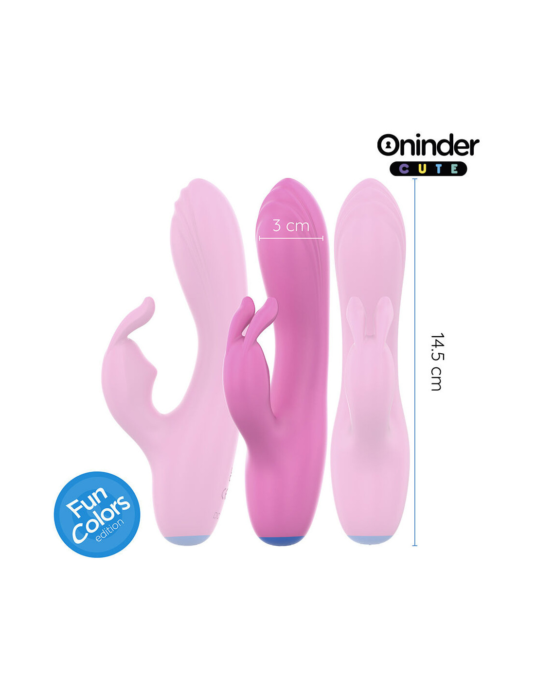 Šis vibratorius išsiskiria savo subtilia šviesiai rožine spalva su tamsiai mėlynu pagrindu, sukuriančiu patrauklų ir rafinuotą kontrastą. Bendras 14,5 cm ilgis ir 3 cm skersmuo idealiai tinka intensyviai patirčiai, nebūdamas per didelis. Jo išlenkta forma ir triušio formos klitorio stimuliatoriaus ranka sukurtos taip, kad vienu metu stimuliuotų dvigubai, pakeldami malonumą į kitą lygį.