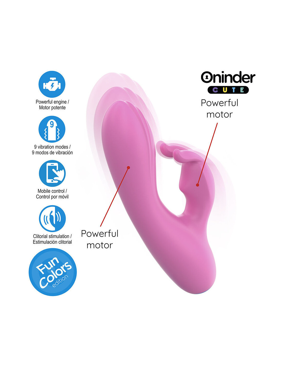 ONINDER™ leidžia padidinti arba sumažinti vibracijų intensyvumą. Naudodami kelių tipų vibraciją galite nuveikti daugiau: rinktis iš skirtingų vibracijos režimų arba perjungti variklius, kai naudojate žaislą su dviem varikliais.