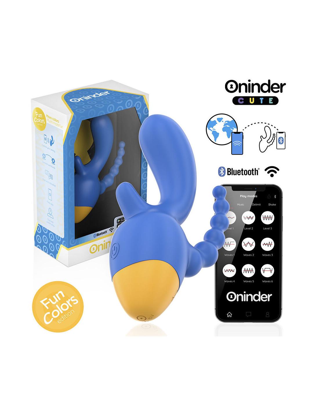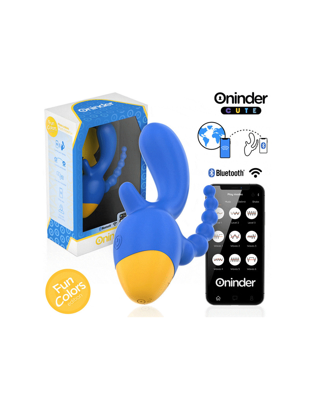 Atraskite pojūčių pasaulį su ONINDER CUTE kolekcijos vibratoriumi, sukurtu tiems, kurie siekia visapusiškos ir tikslios stimuliacijos. Ryškus tamsiai mėlynos ir geltonos spalvos pagrindo derinys suteikia dvigubą stimuliaciją, suteikdamas malonumą tiek klitoriui, tiek analinei sričiai, o jo dizainas yra ergonomiškas ir patogus.