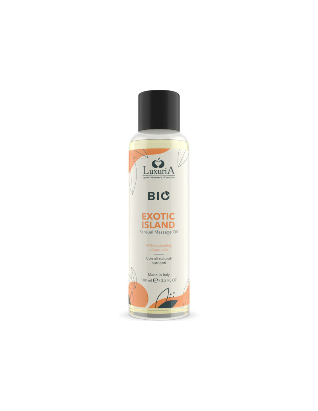 „Luxuria BIO Oil Exotic Island“ – tai masažo aliejus iš naujos „Luxuria“ „Bio“ linijos. Maitinamoji formulė, pagrįsta visiškai natūraliais augaliniais aliejais ir rafinuotomis stimuliuojančiomis esencijomis, intensyviai drėkina, palieka odą švelnią ir kvepiančią. Aliejus stimuliuoja jūsų pojūčius šiltomis, vaisinėmis ir saldžiomis natomis, kurios lydės jus viso masažo metu.