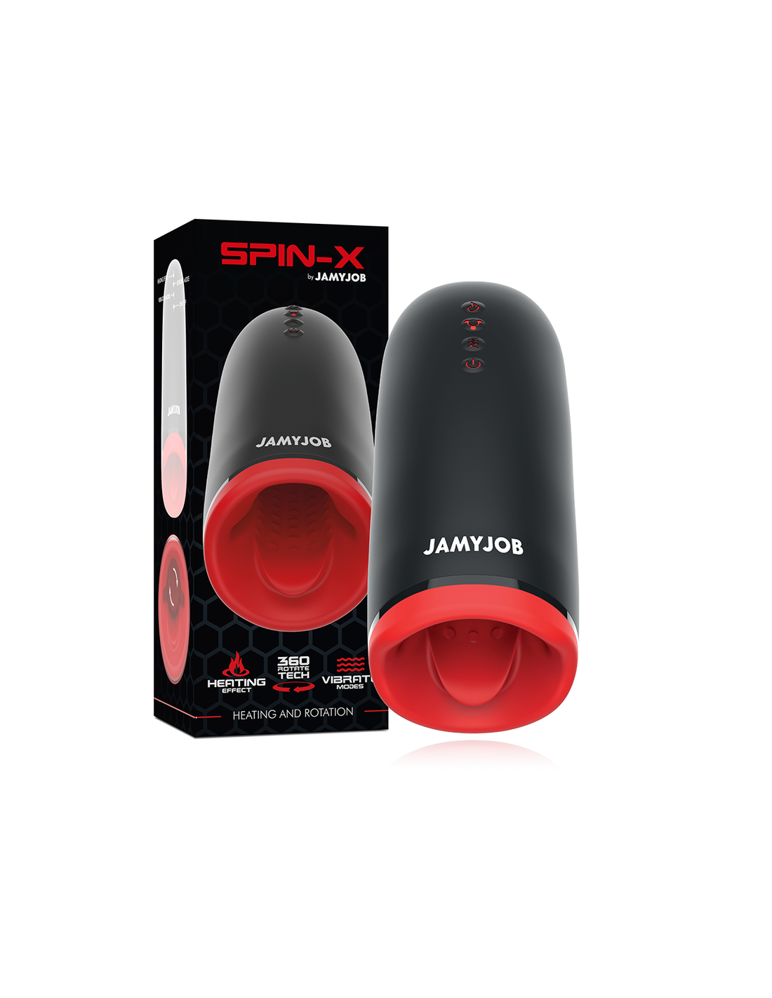 - Dviejų spalvų dizainas: elegantiškas juodas išorinis paviršius ir aistringai raudonas vidus – SPIN-X yra stiliaus ir aistros simbolis.