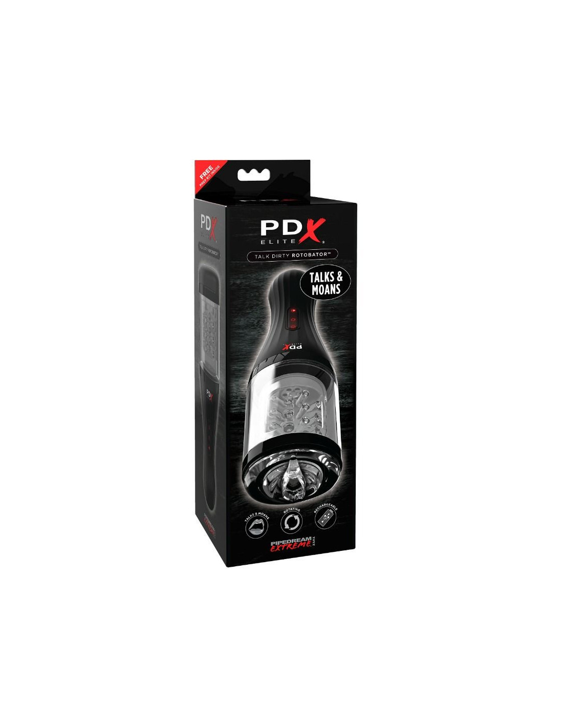 Patirkite tikrą masturbacijos inovaciją! PDX ELITE Talk Dirty Rotobator“ pasižymi seksualiais pokalbiais, kvėpuojančiais dejonėmis ir unikaliai stimuliuojančiu sukimu – visa tai kompaktiškame dizaine. Gundantys garsai suteikia intensyvų malonumą kiekvienai masturbacijos sesijai, o patogus ausinių lizdas leidžia klausytis privačiai.