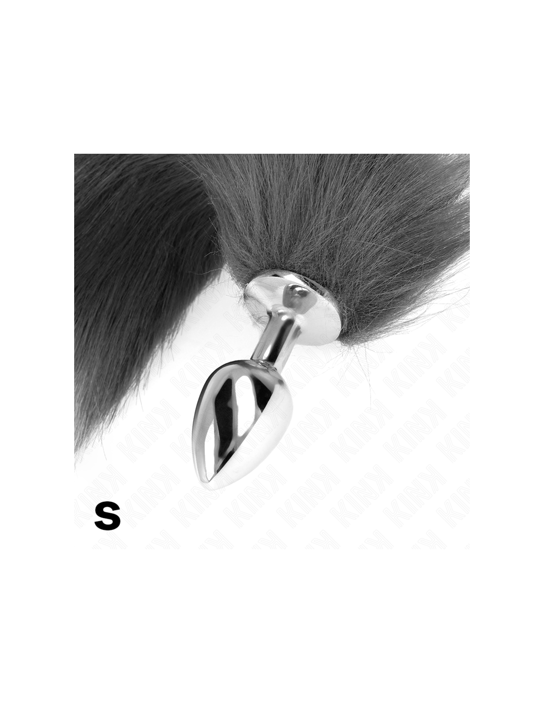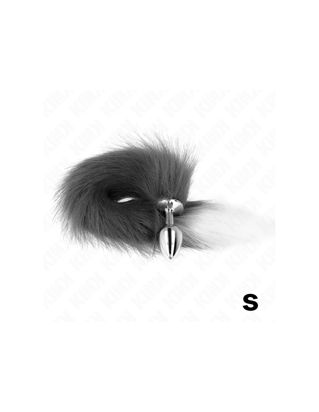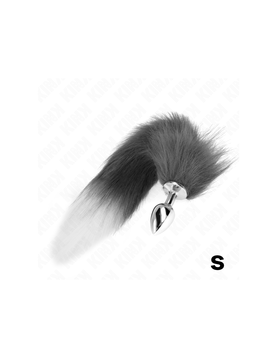 KINK - analinis kaištis, S dydis, 7 x 3 cm, su sintetine uodegėle, 40 cm, pilka ir balta