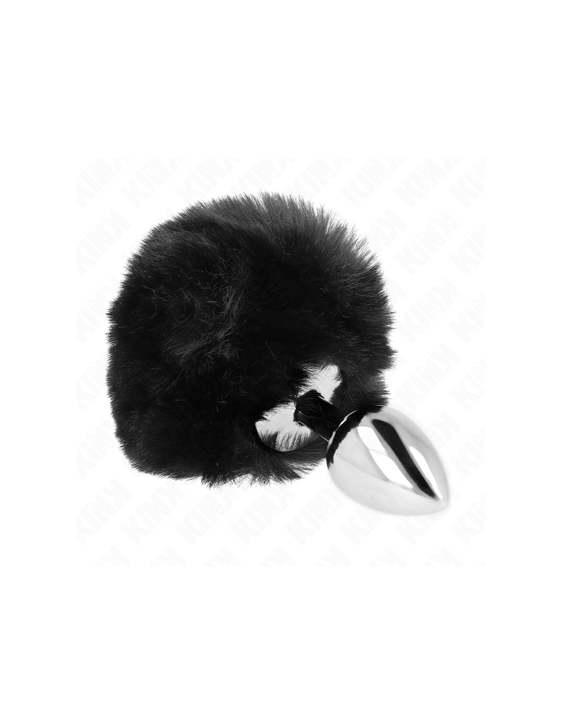 KINK - NERŪDIJANČIO PLIENO KAIŠTIS 7 x 3 CM SU JUODU DIRBTINIU KAILIU, TRIUŠIO UODEGOS GALVUTE 8 CM