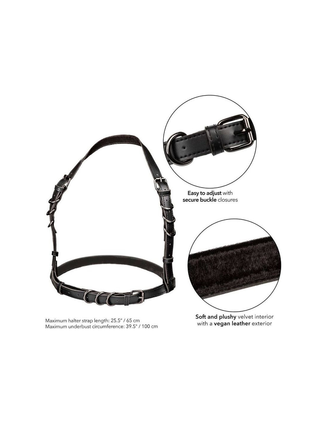 Išbandykite „Halter Buckle Harness“ petnešas iš „Euphoria“ kolekcijos: elegantišką, patogų ir funkcionalų aksesuarą, kuris žavi savo petnešų stiliaus dizainu. Akcentuojančios kūno linkius ir traukiančios akį, šios petnešos puikiai tinka tiek intymioms akimirkoms, tiek drąsiems šventiniams įvaizdžiams. Saugus sagties užsegimas užtikrina lengvą reguliavimą, kad petnešos prisitaikytų prie jūsų pageidaujamo dydžio. Patvarios ir modernios, jos atlaiko intensyvius žaidimus. Mėgaukitės puriu aksominiu vidumi ir pakelkite savo patrauklumą veganiškos odos išore. Tvirta konstrukcija, neatsparūs metaliniai akcentai ir reguliuojamas dydis daro jas patikimas ir vizualiai patrauklias. Patirkite tobulą stiliaus ir jausmingumo derinį su šiomis universaliomis ir žaviomis petnešomis.