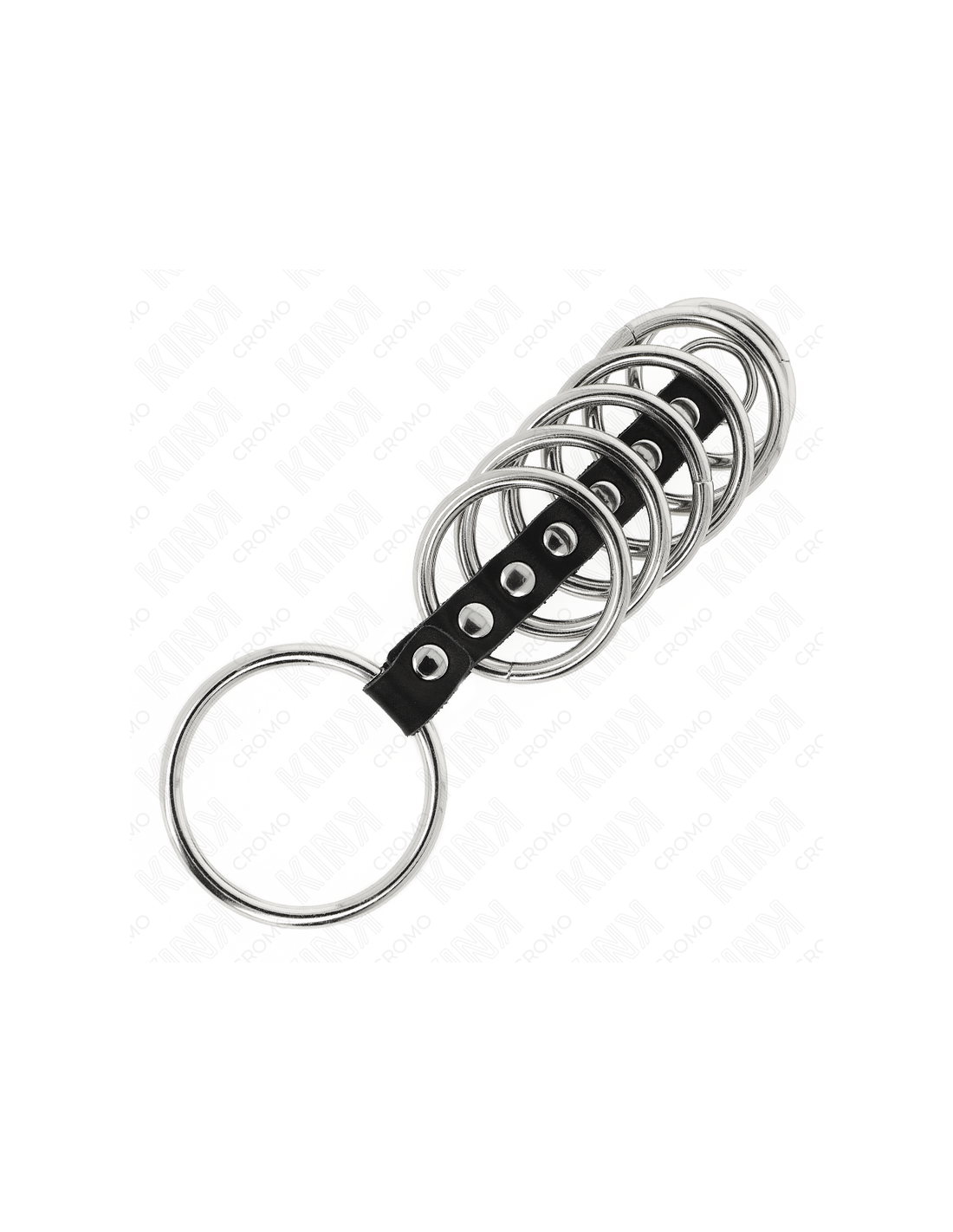 KINK - 7 metaliniai varpos žiedai nuo 3,2 cm iki 5 cm, sujungti oda