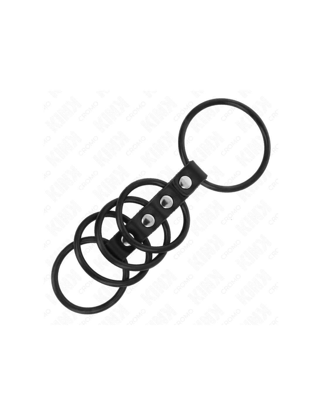 KINK - 5 silikoniniai varpos žiedai nuo 3,8 cm iki 4,8 cm, sujungti oda