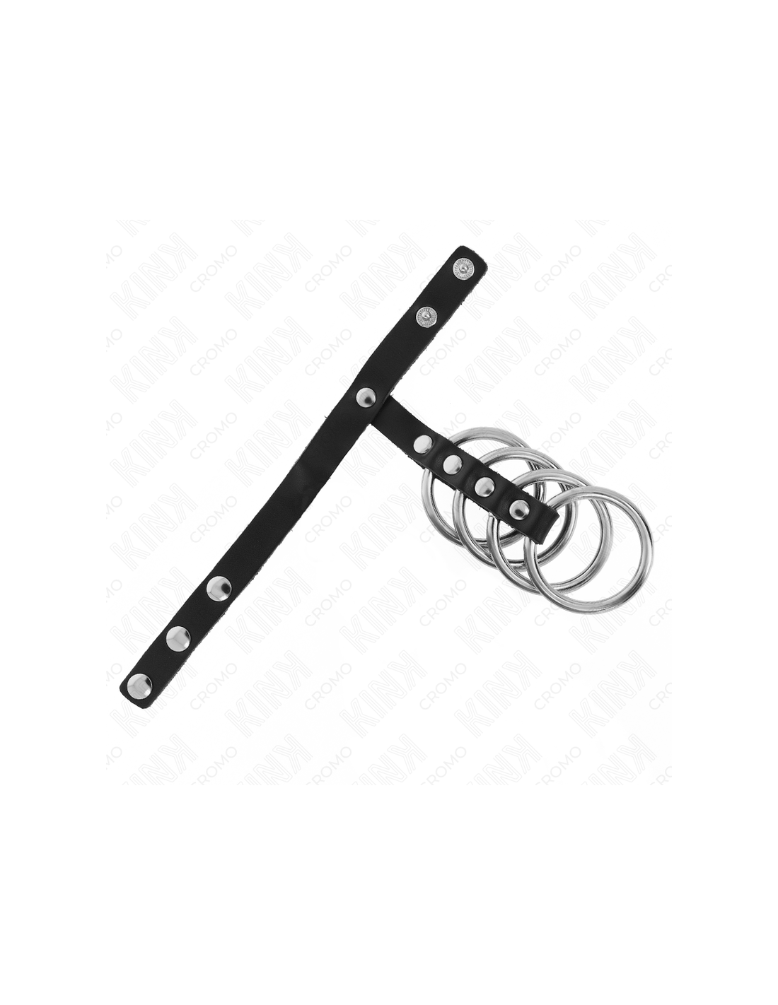 KINK - 4 metaliniai penio žiedai (3,8 cm), sujungti odiniu dirželiu (22 x 1,5 cm) ir užsegimu slėgiu
