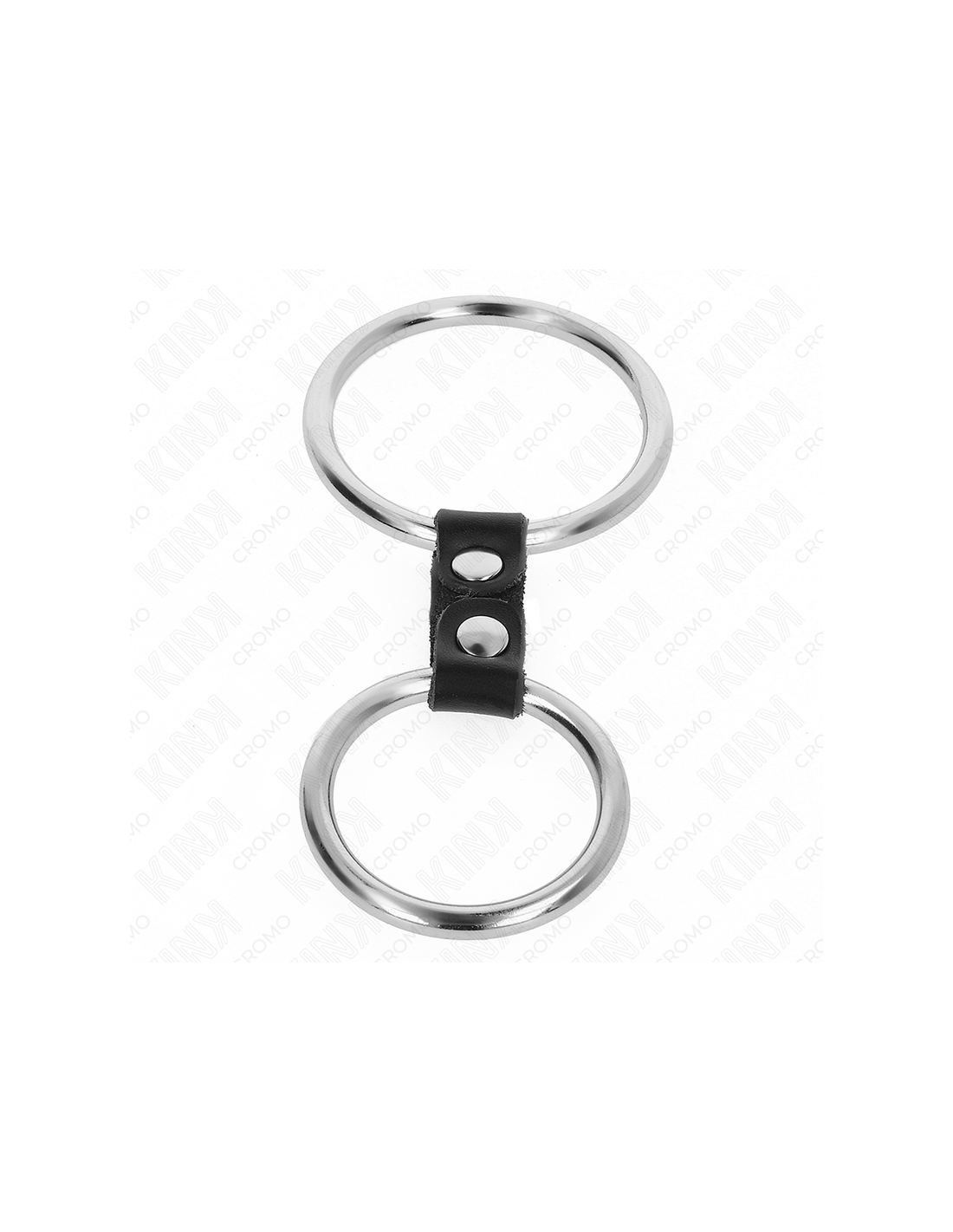 KINK - Dvigubas metalinis penio žiedas 3,7–5 cm, sujungtas odiniu dirželiu, 2 modelis