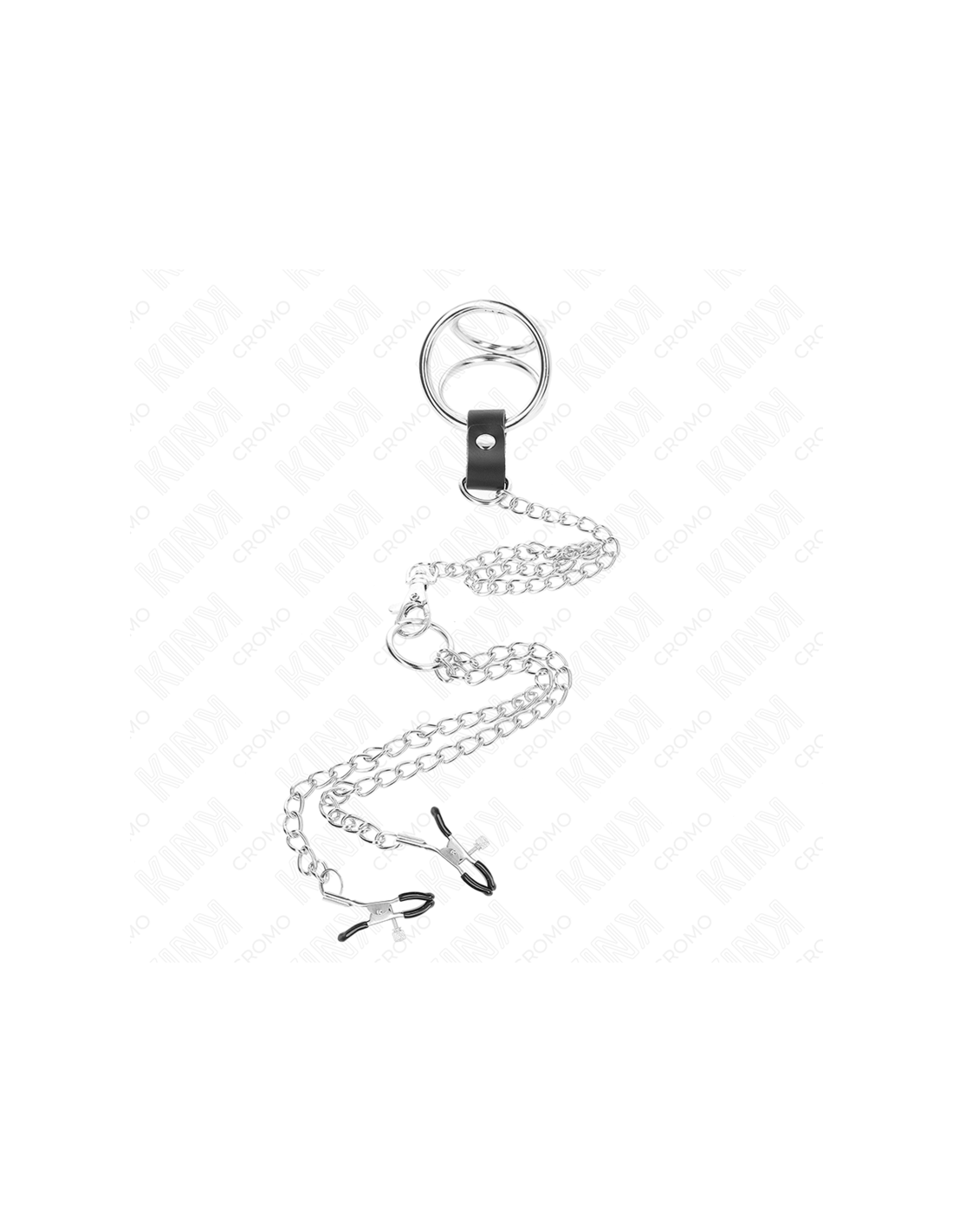 KINK - TRIGUBAS CHROMETAS METALINIS PENIO ŽIEDAS 3 CM IKI 4,5 CM SU 26 CM METALINE GRANDINE IR SPENELIŲ LAIKIKLIAIS
