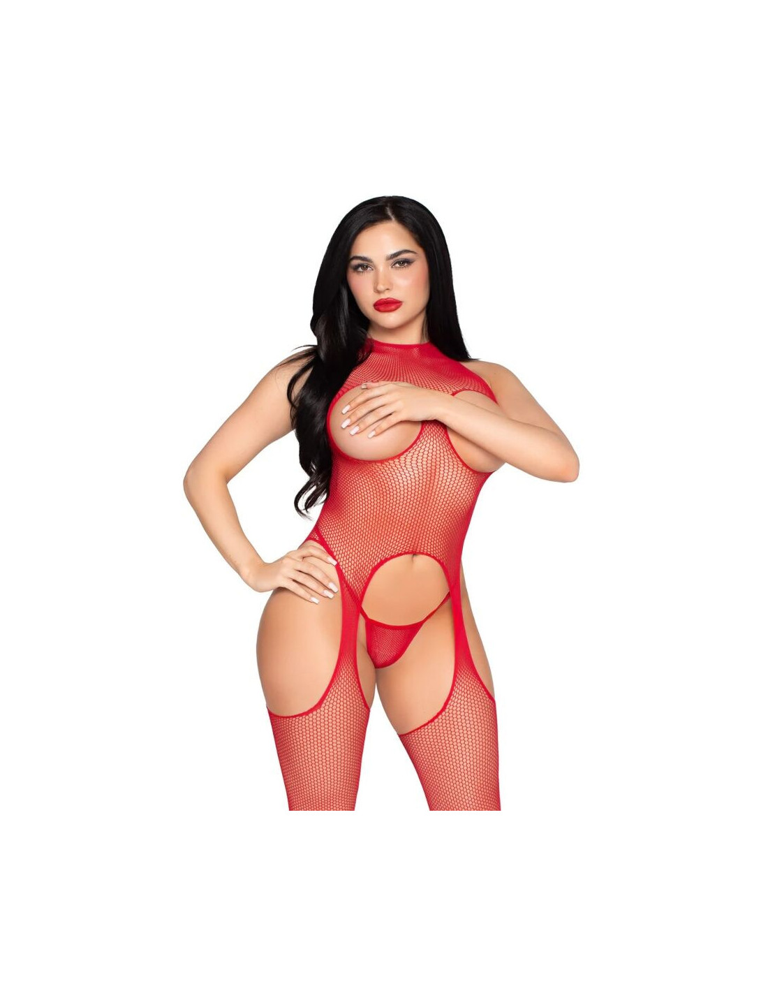 LEG AVENUE - 89374 BODYSTOCKING IR KELNAITĖS BE KAUŠELIŲ RAUDONOS SPALVOS - VIENAS DYDIS