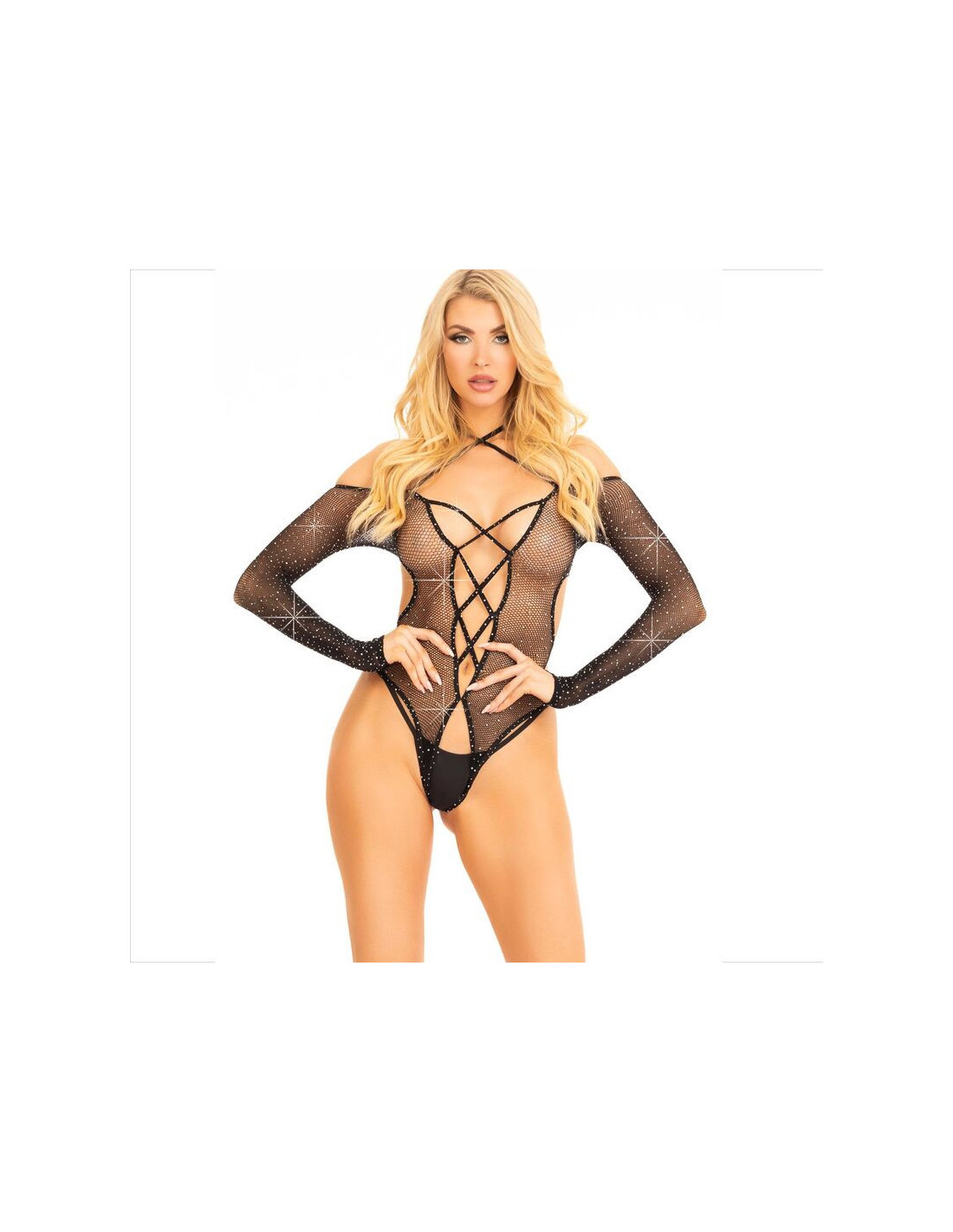 LEG AVENUE BODYSTOCKINGSAtraskite prabangos ir jausmingumo derinį su mūsų akinančiu tinklinio audinio bodžiu be tarpukojo, papuoštu išskirtiniais cirkoniais, suteikiančiais akinančio blizgesio. Šis žavus dizainas sujungia provokuojantį tinklinio audinio skaidrumą su nesenstančia cirkonio elegancija, sukurdamas unikalų drabužį, kuris pabrėš jūsų moteriškumą žavesiu ir drąsiu stiliumi.