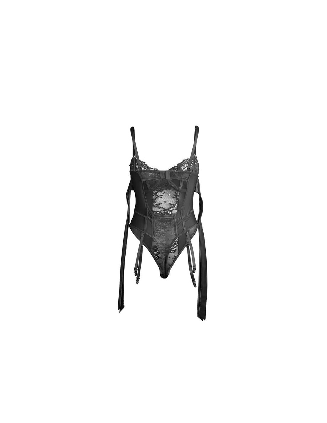 Pagamintas iš 88 % nailono ir 12 % elastano/elastano mišinio, šis bodis pasižymi minkšta, tampria ir patogia tekstūra, kuri puikiai prisitaiko prie jūsų kūno, pabrėždama kiekvieną kūno linkį. Be tarpkojo modelis (atvira tarpkojinė) suteikia drąsios ir gundančios detalės, o integruotos keliaraiščiai suteikia klasikinį ir rafinuotą akcentą, todėl jį idealiai galima derinti su nėriniuotomis kojinėmis arba permatomais drabužiais.