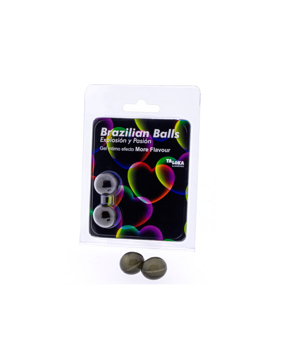 2 braziliški kamuoliukai su jaudinančiu gelio lubrikanto defektų skoniu, kuris suteikia malonumo sprogimą su jaudinančių pojūčių ir aistringų aromatų mišiniu.