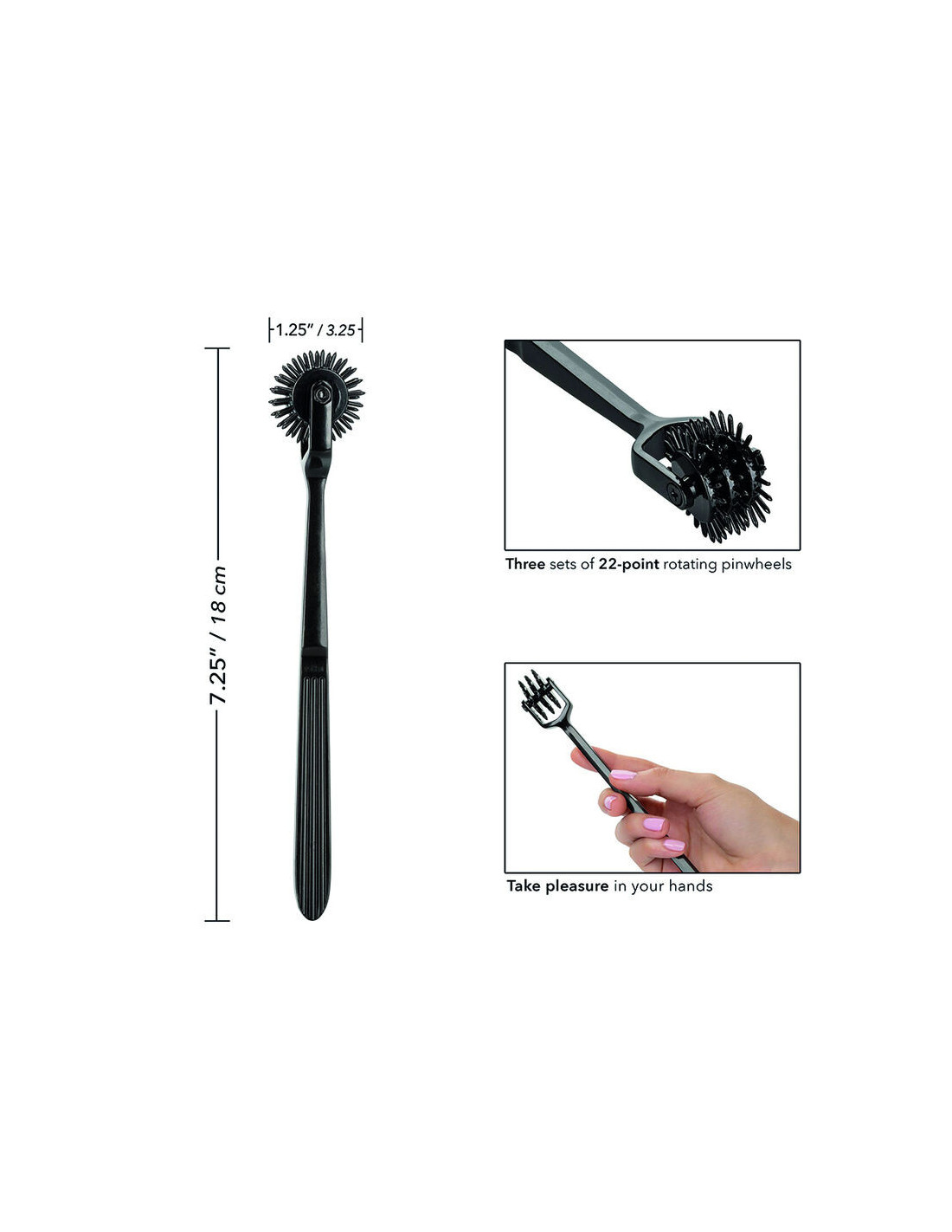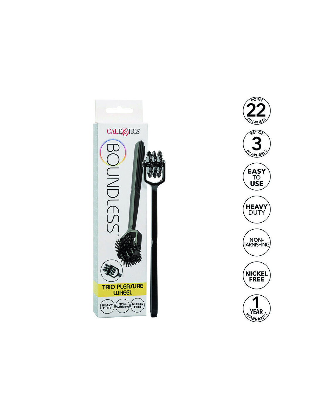 Mėgaukitės nesibaigiančiu atpalaiduojančiu malonumu su drąsiu „Boundless Trio“ malonumų ratuku. Malonumų ratas sukurtas jaudinti dėl trijų 22 taškų besisukančių malūnėlių, tvirtų detalių ir neapsiberiančios medžiagos. Patvari, neapsiberianti medžiaga sukurta taip, kad tarnautų be galo ilgai. Su kiekvienu apsisukimu ant jūsų geismo odos šis aistringas ratas jus jaudins, jaudins ir jaudins, ir pakels kiekvieną intymią akimirką į aukštesnį lygį.