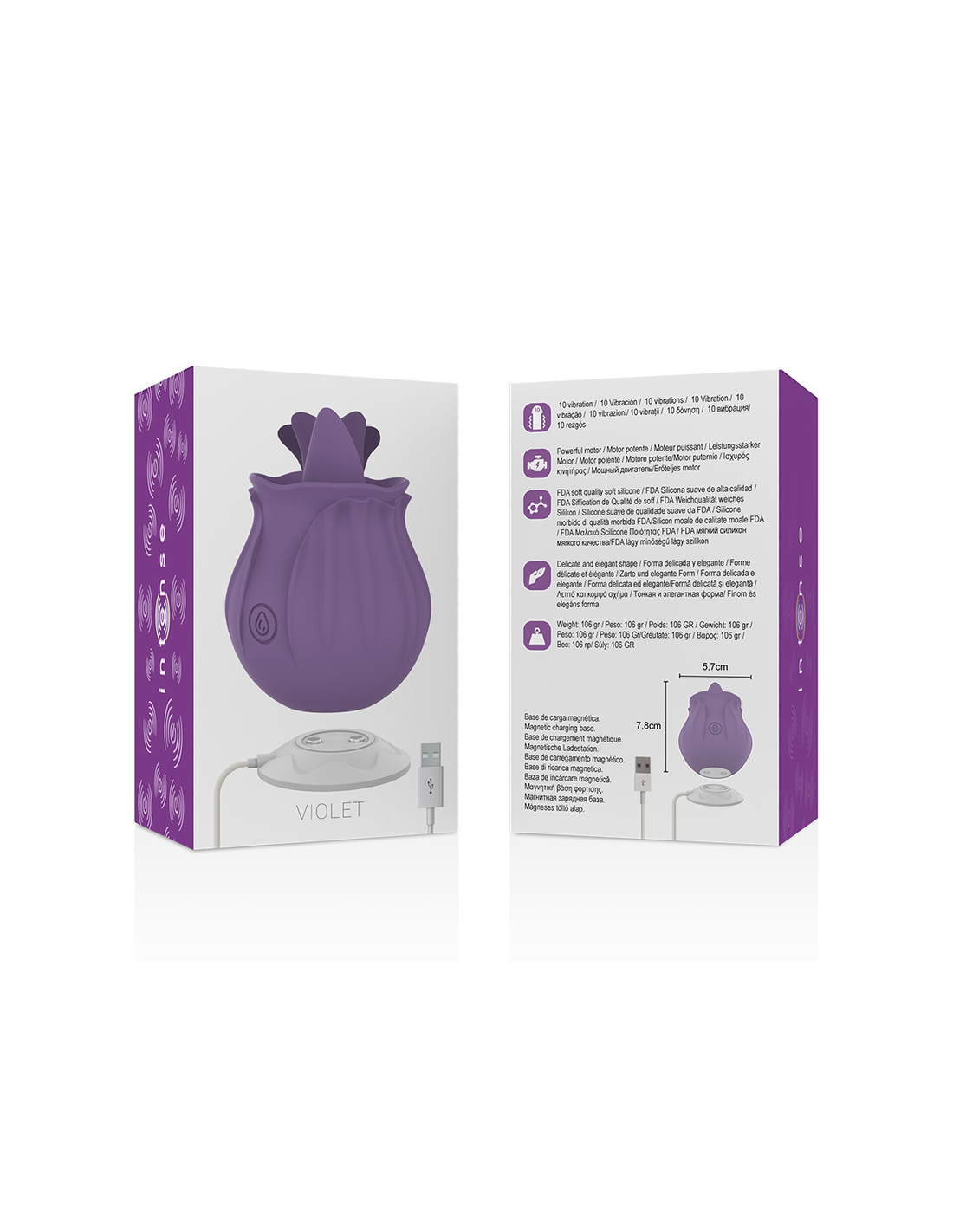 Pakilkite į viršūnę! INTENSE ™ VIOLET STIMULIACIJOS AKIMIRKOS: rožės formos vibratorius su labai energingu galiuku, kuris nukels jus į kulminaciją. Su užapvalintu 100 % silikoninio stimuliatoriaus galiuku, cirkuliuojančiomis vibracijomis ir iš viso 10 vibracijos derinių palepinsite visas savo erogenines zonas, tokias kaip klitoris, lytinės lūpos ar speneliai. Dėl kompaktiško dydžio tai galite daryti bet kur! Tokiu būdu INTENSE ™ VIOLET STIMULIACIJOS AKIMIRKĄ galima diskretiškai nešiotis ir keliaujant, o jis visada džiugina jus savo absoliučiu universalumu.