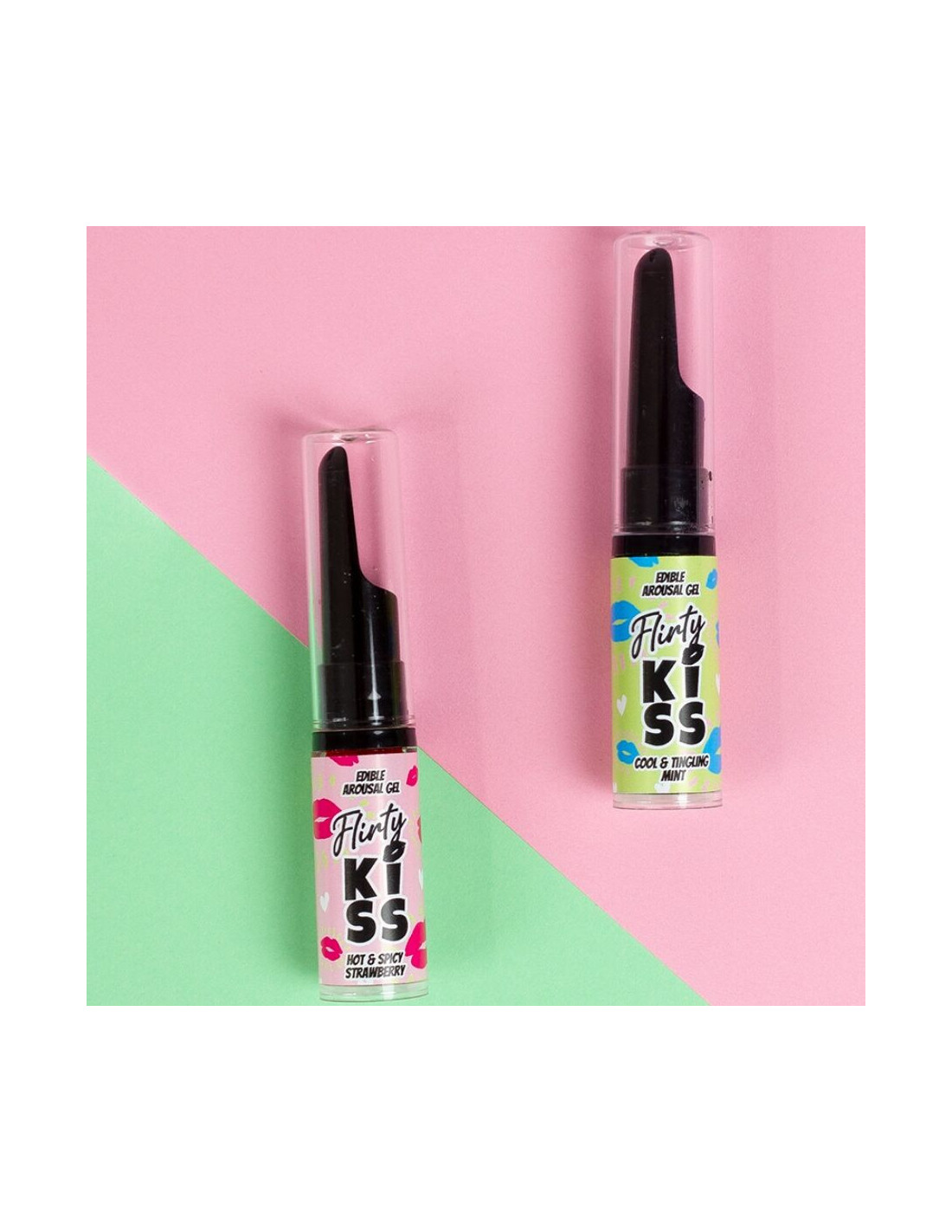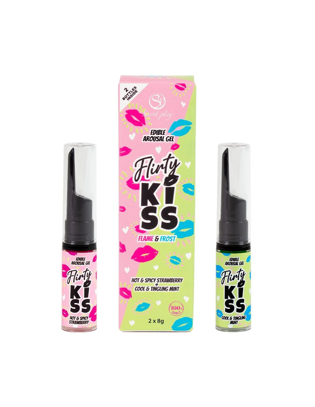 SECRETPLAY COSMETICOralinis seksas ir preliudija – išties jaudinantys dalykai, tačiau su papildomu akcentu jie gali tapti jūsų mėgstamiausia veikla. „Flirty Kiss“ sudaro du geliai: vienas braškių gelis su aštriu šildančiu efektu ir kitas mėtų gelis su ryškiu vėsinančiu pojūčiu. Abu puikiai tinka poroms naudoti kartu. Vienas partneris patirs jaudinantį braškių šilumą ir stimuliuojantį aštrų poveikį, o kitas – ryškią, gaivinančią mėtų natą. Pojūčių sprogimas nepamirštamiems bučiniams ir oraliniam seksui.
