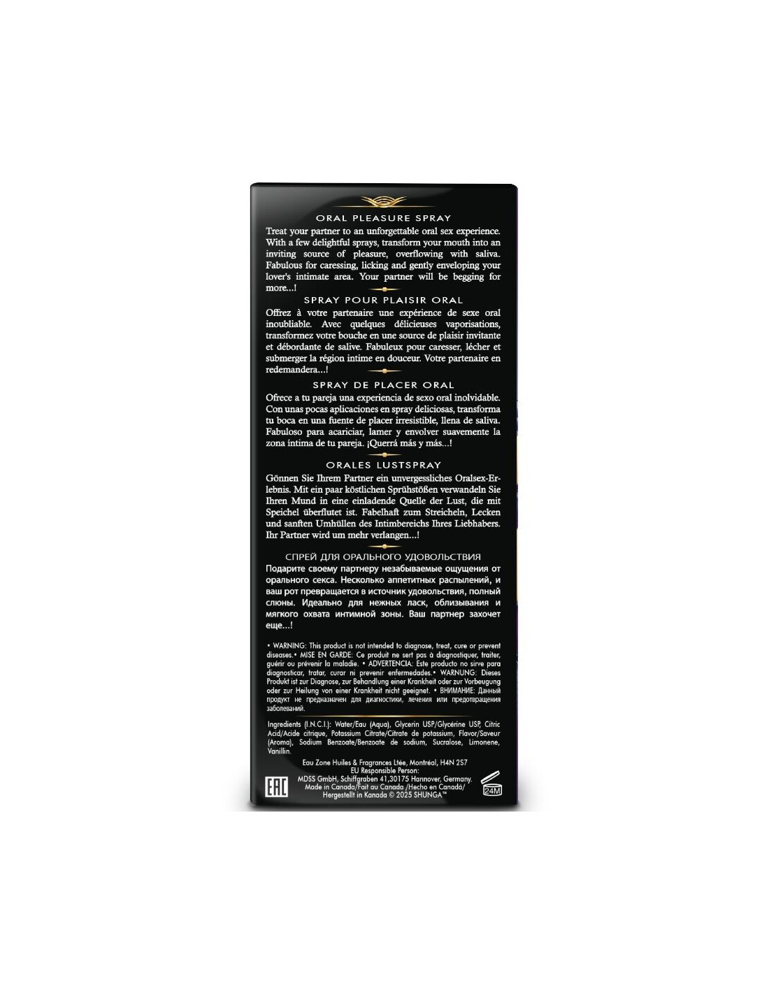 SHUNGA APHRODISIACSAtraskite naują būdą mėgautis oraliniu seksu su šiuo purškikliu, sukurtu pakelti patirtį į kitą lygį. Vos keliais papurškimais jūsų burna įgaus minkštesnę, drėgnesnę tekstūrą, puikiai tinkančią jausmingam kiekvieno intymaus partnerio kampelio tyrinėjimui. Gardūs jo skoniai pažadina pojūčius ir kiekvieną bučinį, kiekvieną laižymą ir kiekvieną prisilietimą paverčia nenugalimu stimuliu, kuris natūraliai didina geismą.