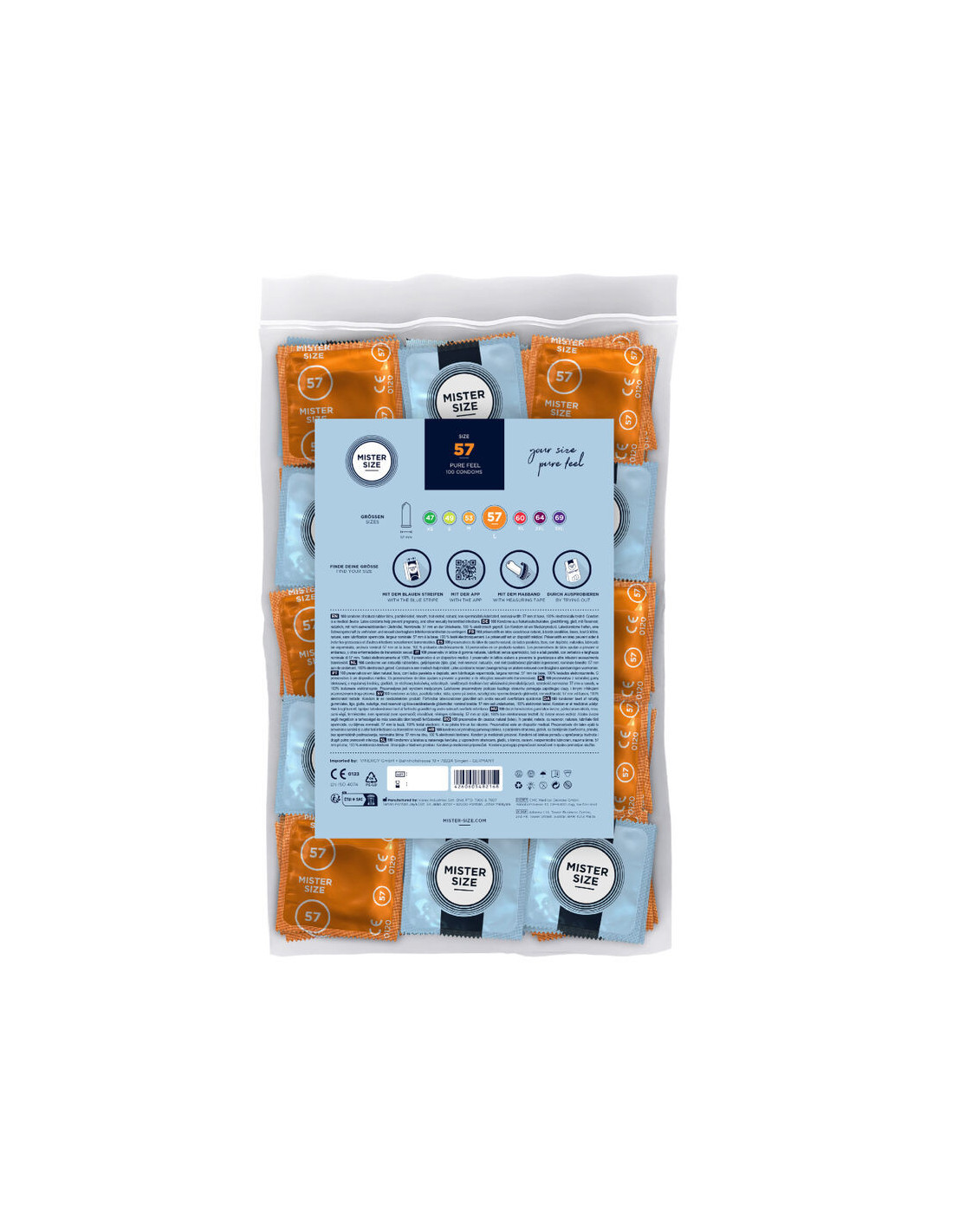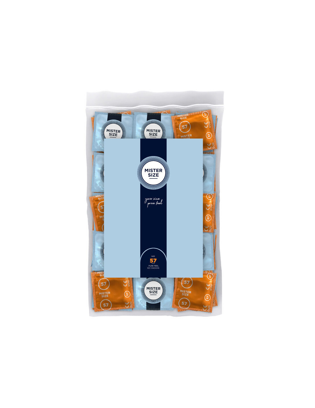 Kartais standarto tiesiog nepakanka. Mūvėjant prezervatyvą, tikriausiai jau patyrėte nepatogumą, kai jis ne visai tinka. Nenuostabu, kad dar neradote savo asmeninio dydžio. Tačiau nuo šiol visada galite su savimi nešiotis MISTER SIZE 57. Dabar, kai chemija tinkama, galite patirti, koks lengvas gali būti seksas.