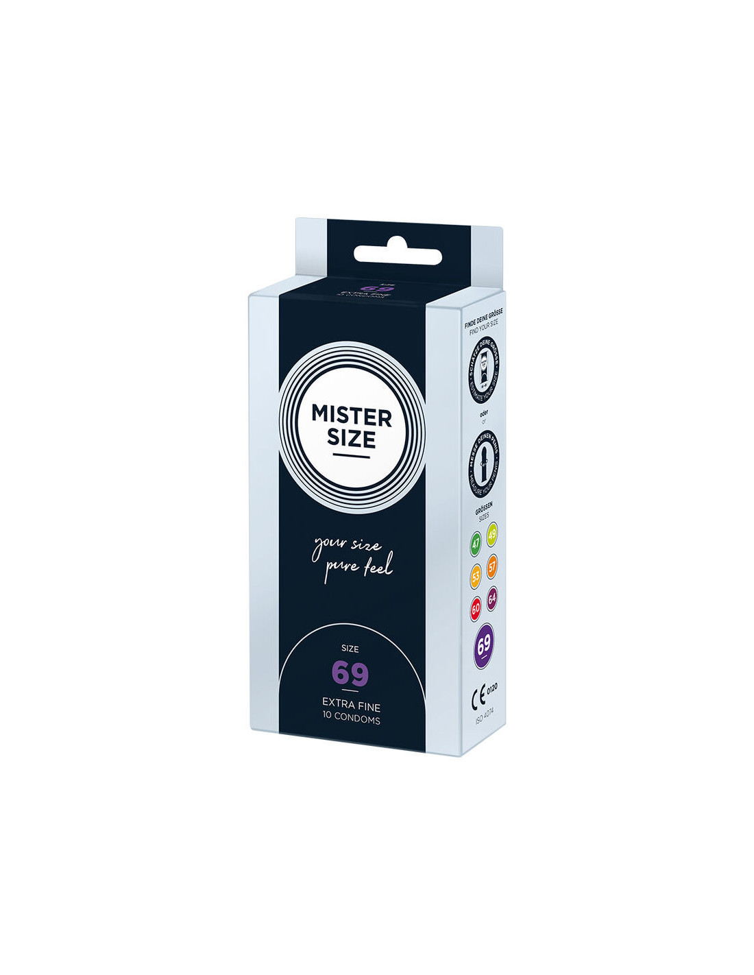 MISTER SIZEBe atsakomybės ir rūpesčio sekso metu, vyrams, turintiems didelę varpą, natūraliai taip pat reikia tinkamo prezervatyvo, kurį iki šiol buvo sunku rasti. Laimei, MISTER SIZE 69 yra tarsi asmeninis, pagal užsakymą pasiūtas kostiumas. Jis puikiai priglunda prie geriausios jūsų vietos kaip antra oda ir leidžia patirti intensyvias ir malonumo akimirkas. Jokių erzinančių šalutinių poveikių, tik grynas pojūtis.