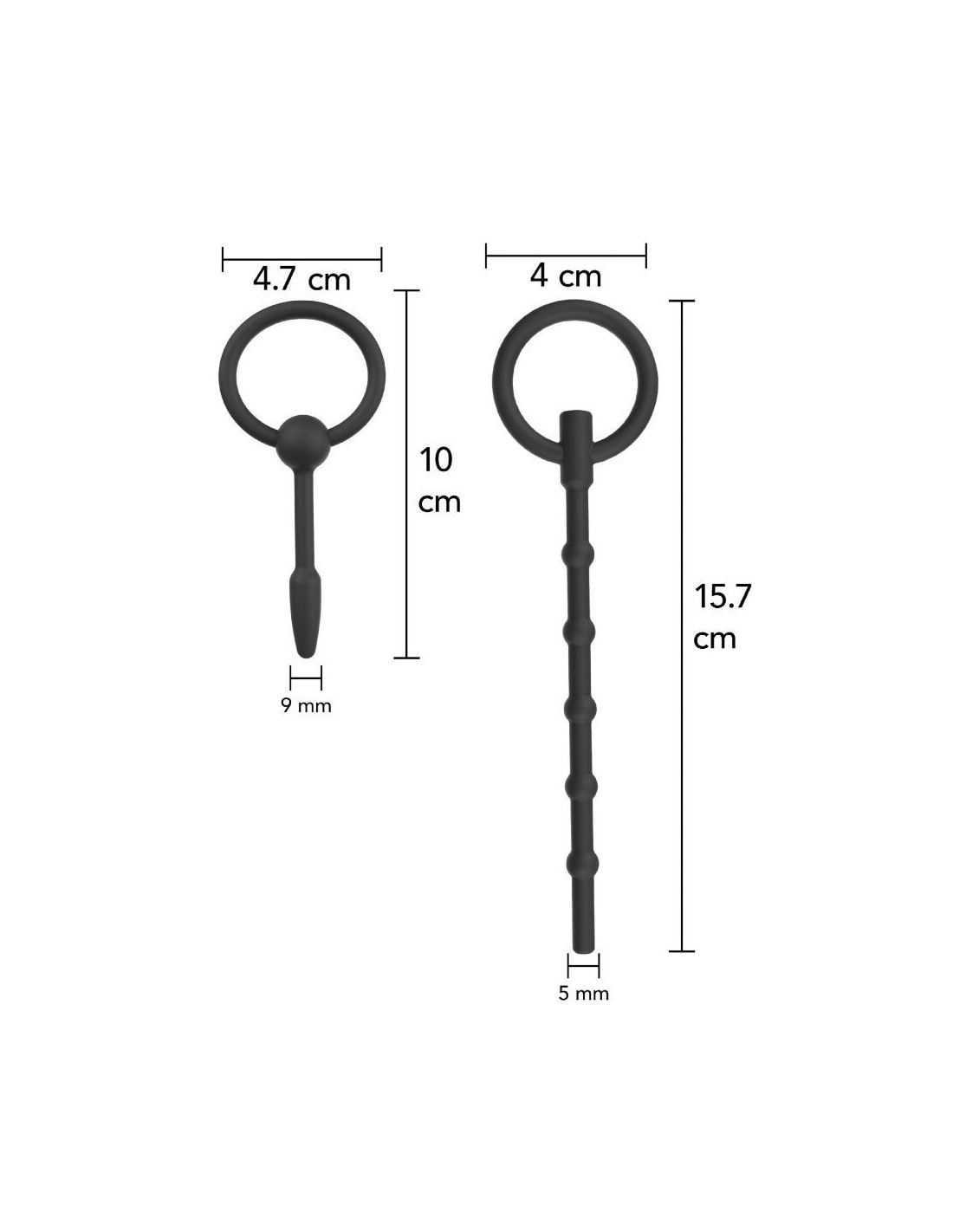 - Set of two urethral plugs with different lengths and diameters
