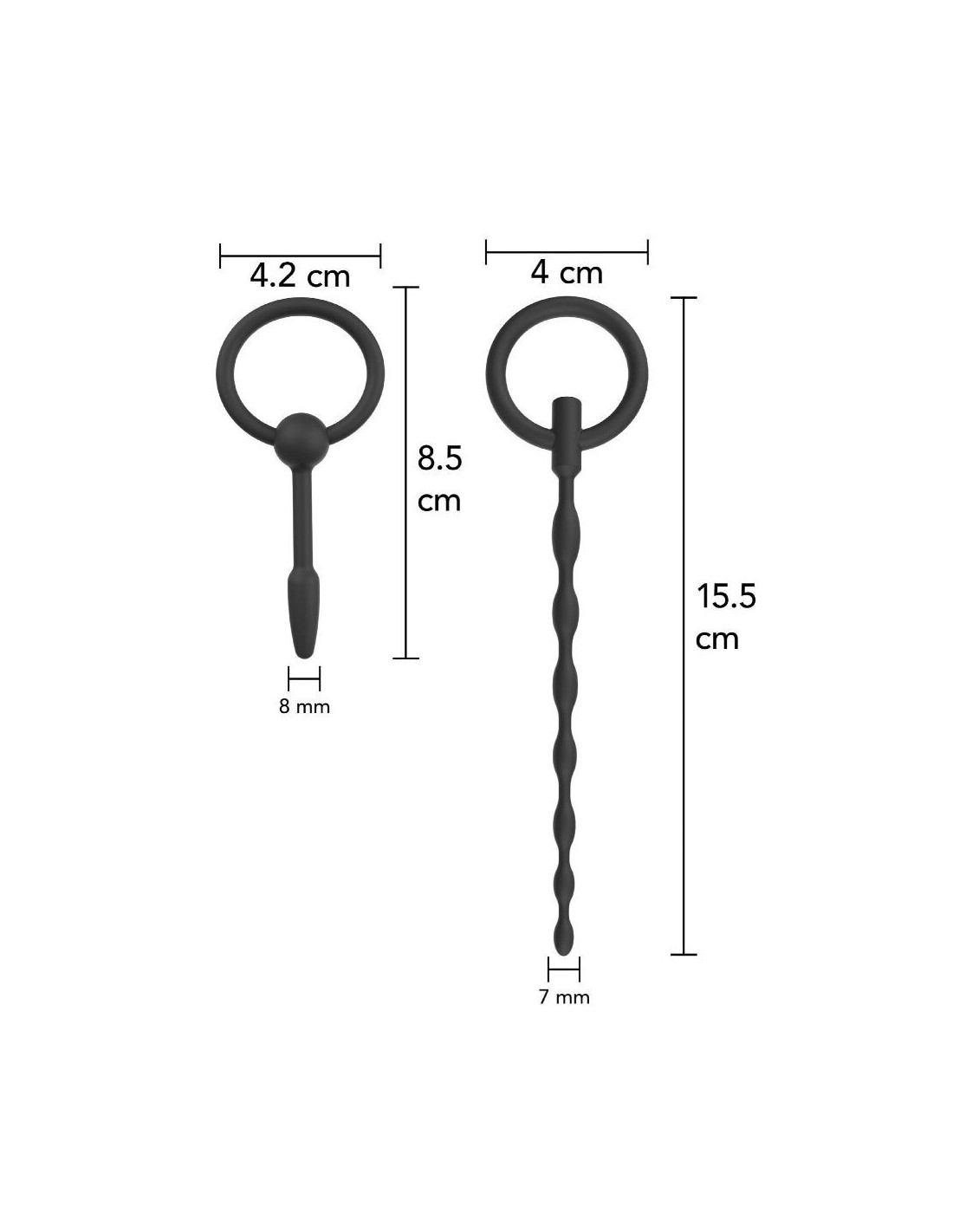 - Starter set with two urethral plugs of different lengths and diameters