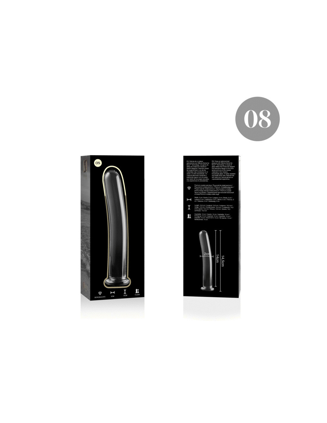 NEBULA SERIES BY IBIZA – 8 modelio dildo, borosilikatinis stiklas, skaidrus, 14,5 cm -O- 2 cm