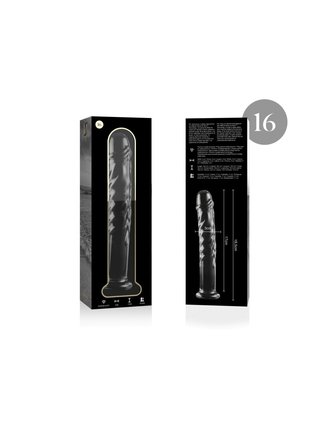 NEBULA SERIES BY IBIZA – 16 modelio dildo, borosilikatinis stiklas, skaidrus, 18,5 cm, 0–3 cm
