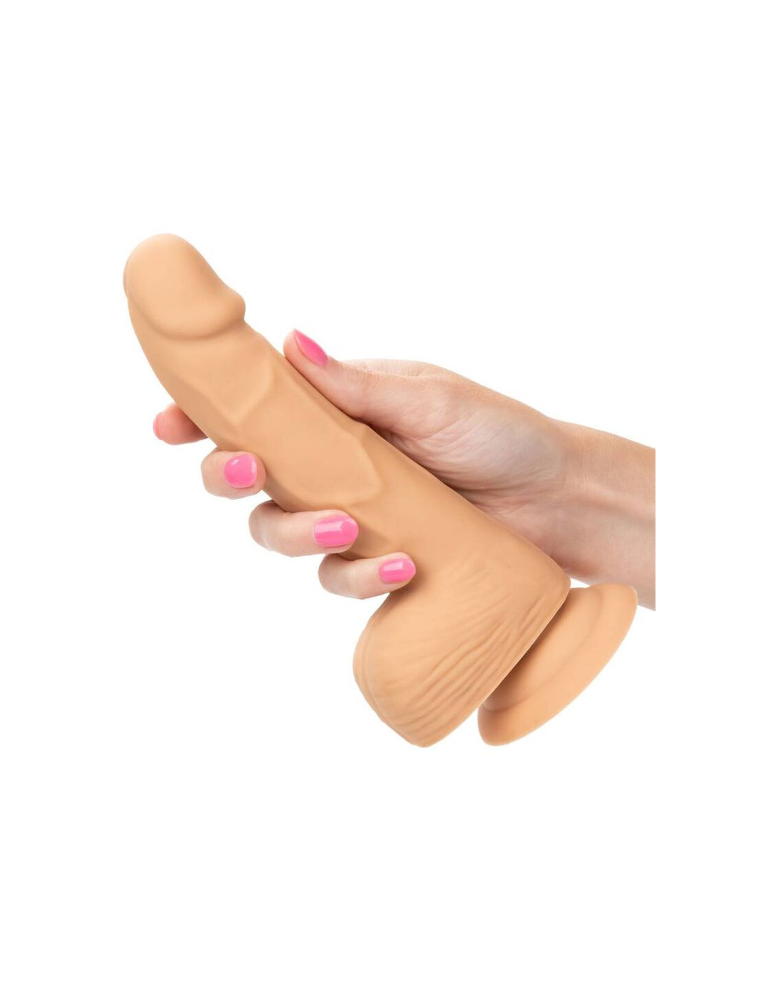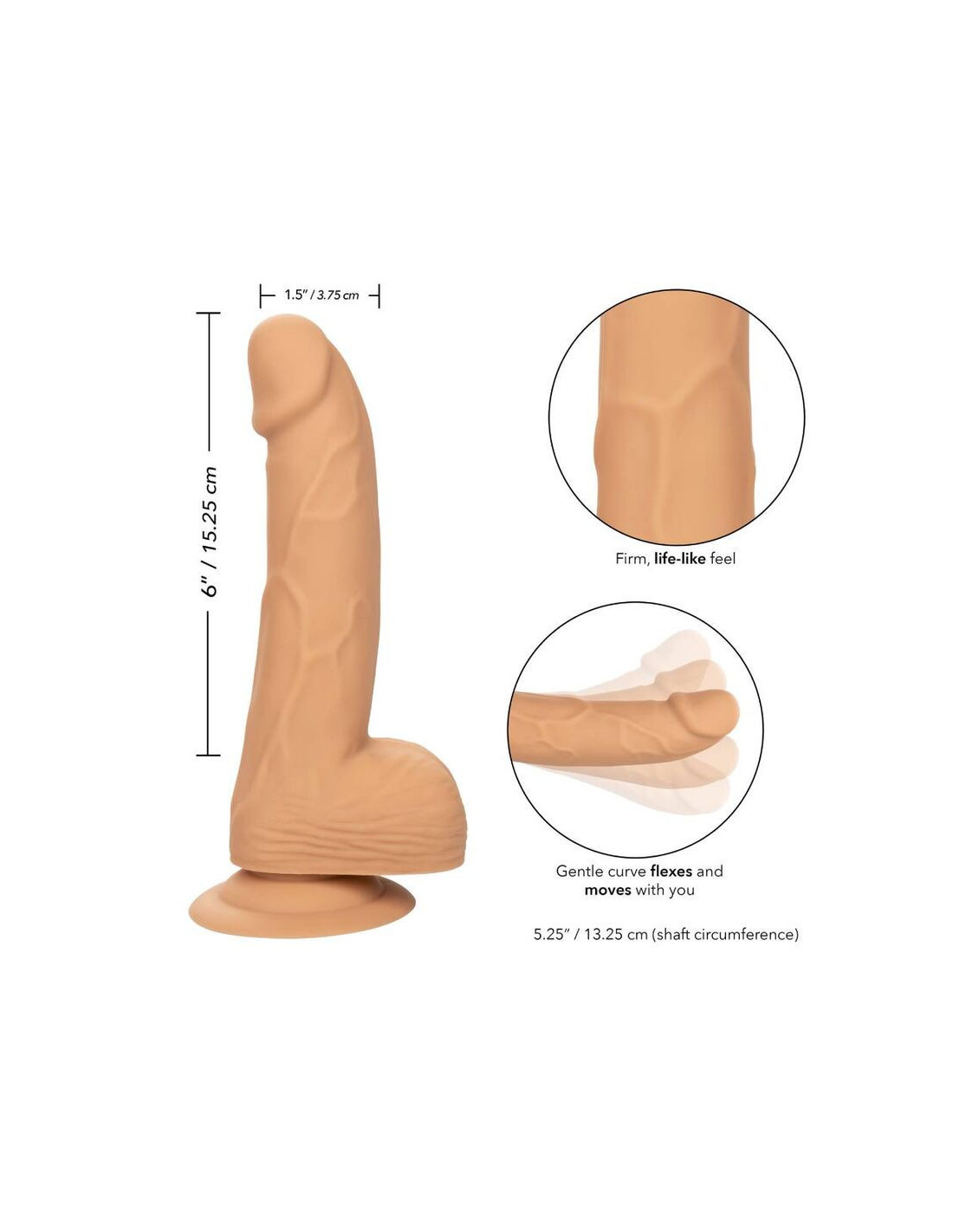 Jums svarbiausia dydis, todėl „CalExotics Silicone Studs 6“ atkeliavo, kad suteiktų pulsuojančią patirtį, tinkančią bet kokio dydžio karalienei. Tikro pojūčio penis pagamintas su plačiu 6 colių kotu, realistišku, lanksčiu dizainu ir siurbtuko pagrindu. Suteikite trokštamą malonumą su 6 colių ilgio peniu su jausmingu galiuku, tekstūruotu kotu ir tikroviškais kamuoliukais. Tekstūruotas kotas yra tvirtas, tačiau lankstus, todėl užtikrins tikrai tikrovišką įsiskverbimo patirtį. Flanšinis pagrindas turi tvirtą siurbtuką, kurį galima naudoti diržuose arba pritvirtinti prie lygaus paviršiaus, kad būtų užtikrintas sensacingas laisvų rankų malonumas.