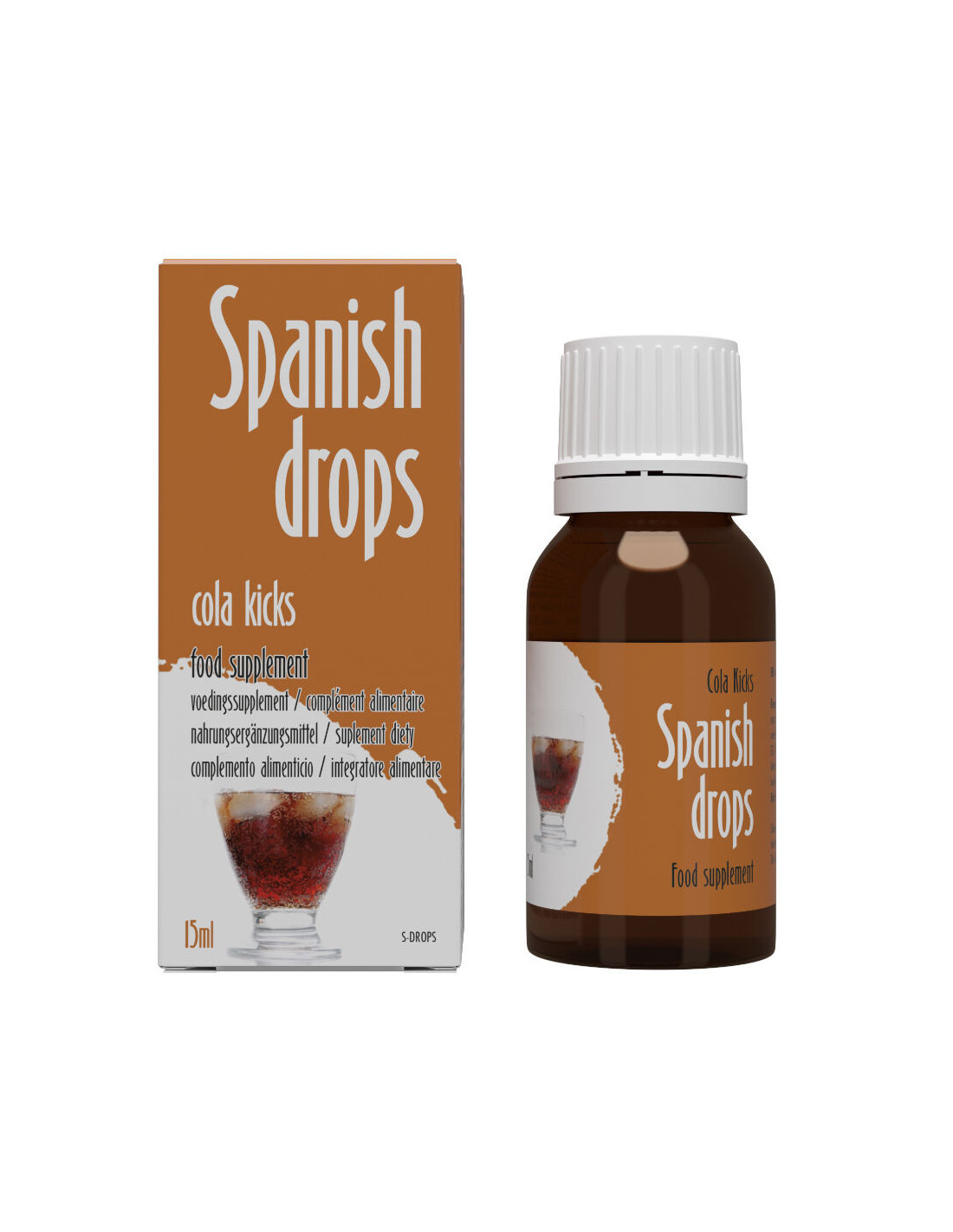 „Spanish Drops – Cola Kicks“ unikaliu būdu stimuliuoja geismą ir suteikia papildomos seksualinės energijos bei optimalaus erotinio susijaudinimo. Šios lašai su skaniu kokakolos skoniu suteikia seksualinį stimulą, dėl kurio sustiprėja seksualinis potraukis. Optimaliai seksualinei veiklai ir papildomam malonumui.