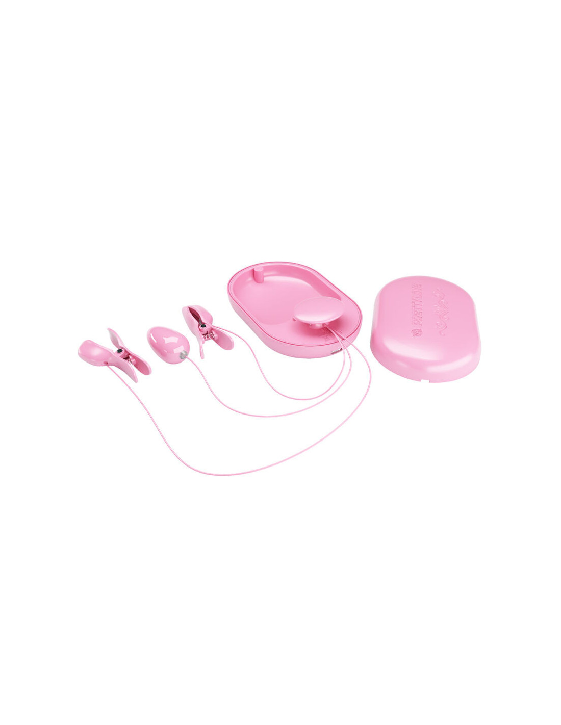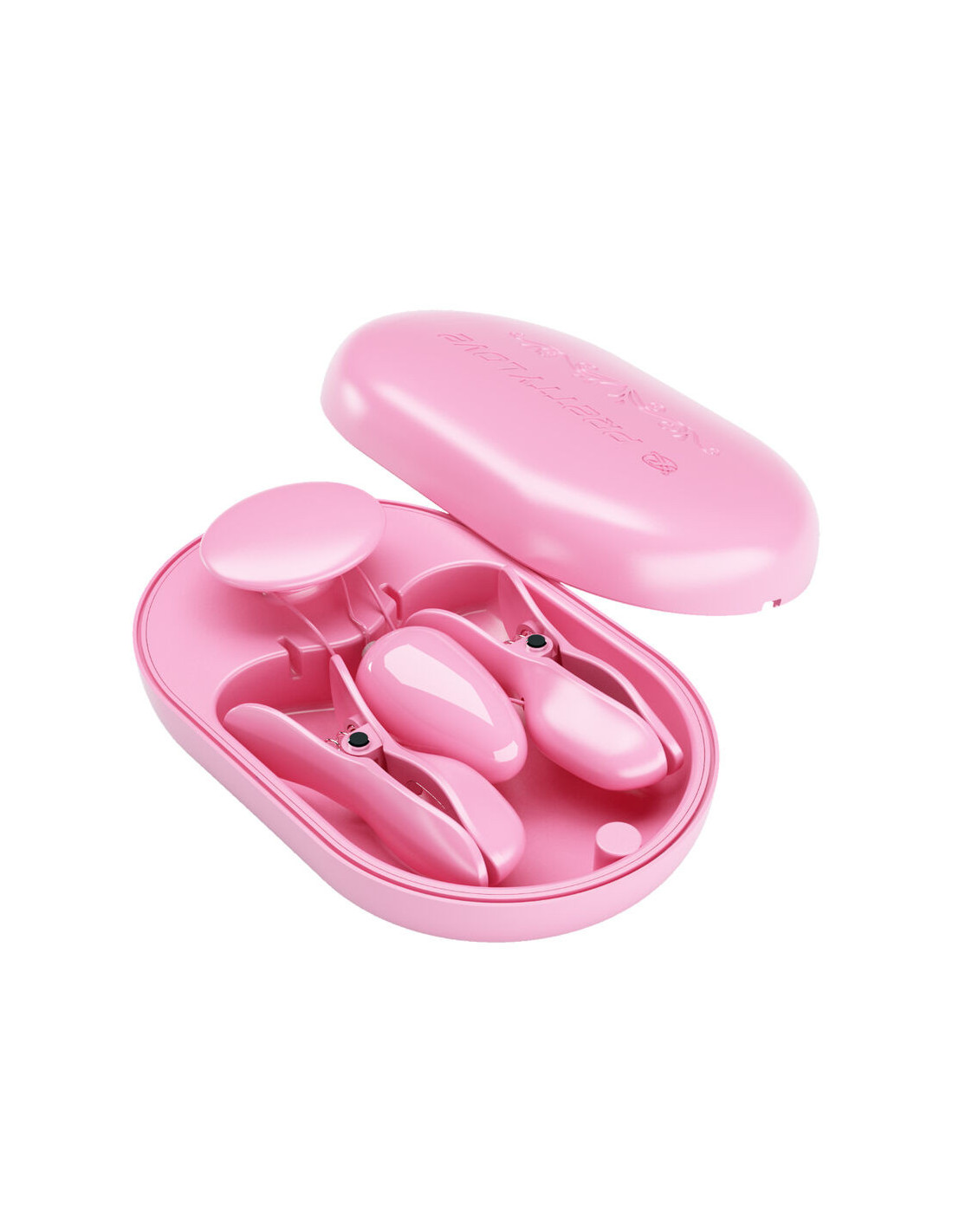 Šie nuostabūs spaustukai idealiai tinka tiems, kurie mėgsta spenelių stimuliaciją! Su šia kompaktiška sistema gausite spenelių spaustukus, neįtikėtiną spenelių elektrostimuliaciją ir galingą vibraciją vienu metu! Antgaliai yra paminkštinti, kad būtų užtikrintas visiškas komfortas ir sukibimas. Tvirtai laikykite juos, padidinkite vibraciją ir mėgaukitės stulbinančia spenelių stimuliacija!