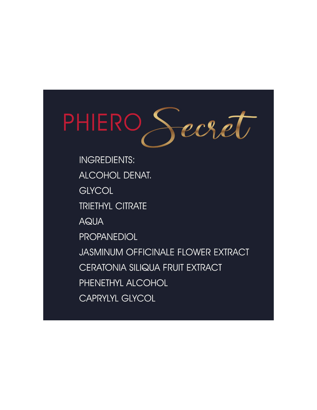 500COSMETICS„Phiero Secret“ – tai bekvapių medžiagų, veikiančių kaip moteriški lytiniai hormonai ir didinančių seksualinį patrauklumą, derinys. Jis pagrįstas natūralia feromonų patrauklia galia patraukti vyrų dėmesį. Jis neturi jokio kvapo, todėl gali būti derinamas su bet kokio tipo kvapais. Smegenys, susidūrusios su teigiamu stimulu, gauna signalą ir sukelia reakcijas, kurios sukelia gavėjui potraukį ir ilgesį jas išlaisvinusiam asmeniui.