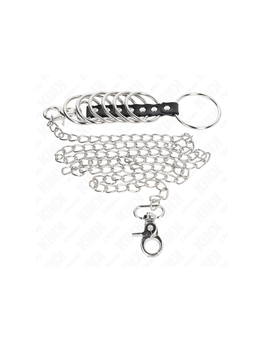 KINK - 7 metaliniai penio žiedai nuo 3,8 cm iki 5 cm, sujungti oda ir metaline grandine 100 cm