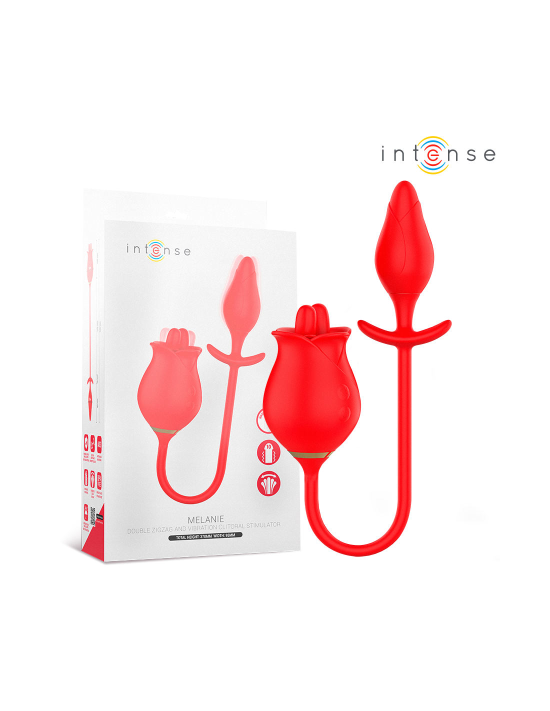 INTENSE HIGH TECHLeiskite sau pasinerti į unikalią malonumo patirtį su „Melanie“ dvigubu stimuliatoriumi iš „Intense“ – novatorišku žaislu, sukurtu pažadinti jūsų pojūčius ir suteikti visiškai naujų pojūčių. Jo dizainas derina vibracijos galią su dinamišku zigzago formos liežuvio judesiu, kuris tiksliai imituoja oralinį trynimą ir stimuliaciją, pasiekiant intensyvius ir visiškai realistiškus orgazmus.