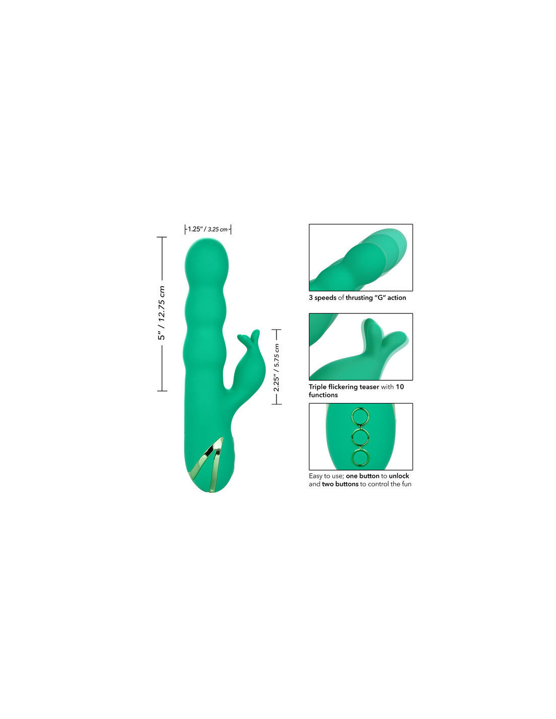 - Galingas vibruojantis ir stumiantis G taško masažuoklis bei trigubai mirksintis stimuliatorius