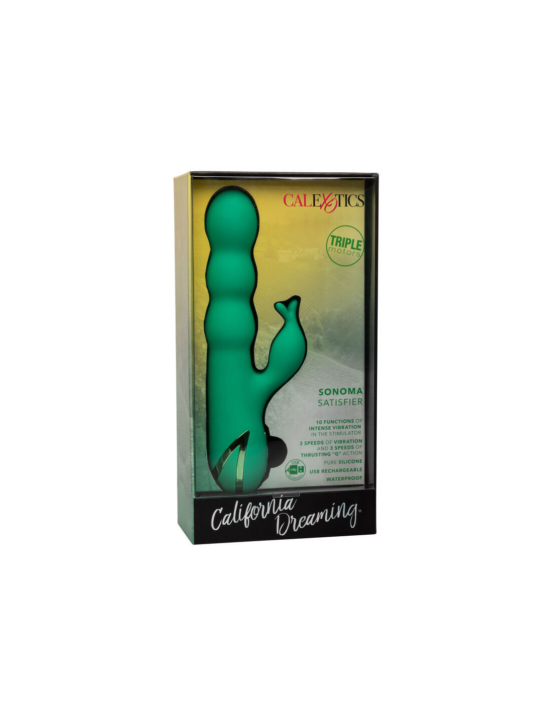 Žaisminga „California Dreaming“ kolekcija prikelia prabangias fantazijas su orgazminiu „Sonoma“. Galingas masažuoklis pasiruošęs iš naujo išgyventi jūsų mėgstamiausias vasaros nuotykių fantazijas su 10 galingų vibracijos funkcijų ir 3 kelius drebančiais stūmimo greičiais.