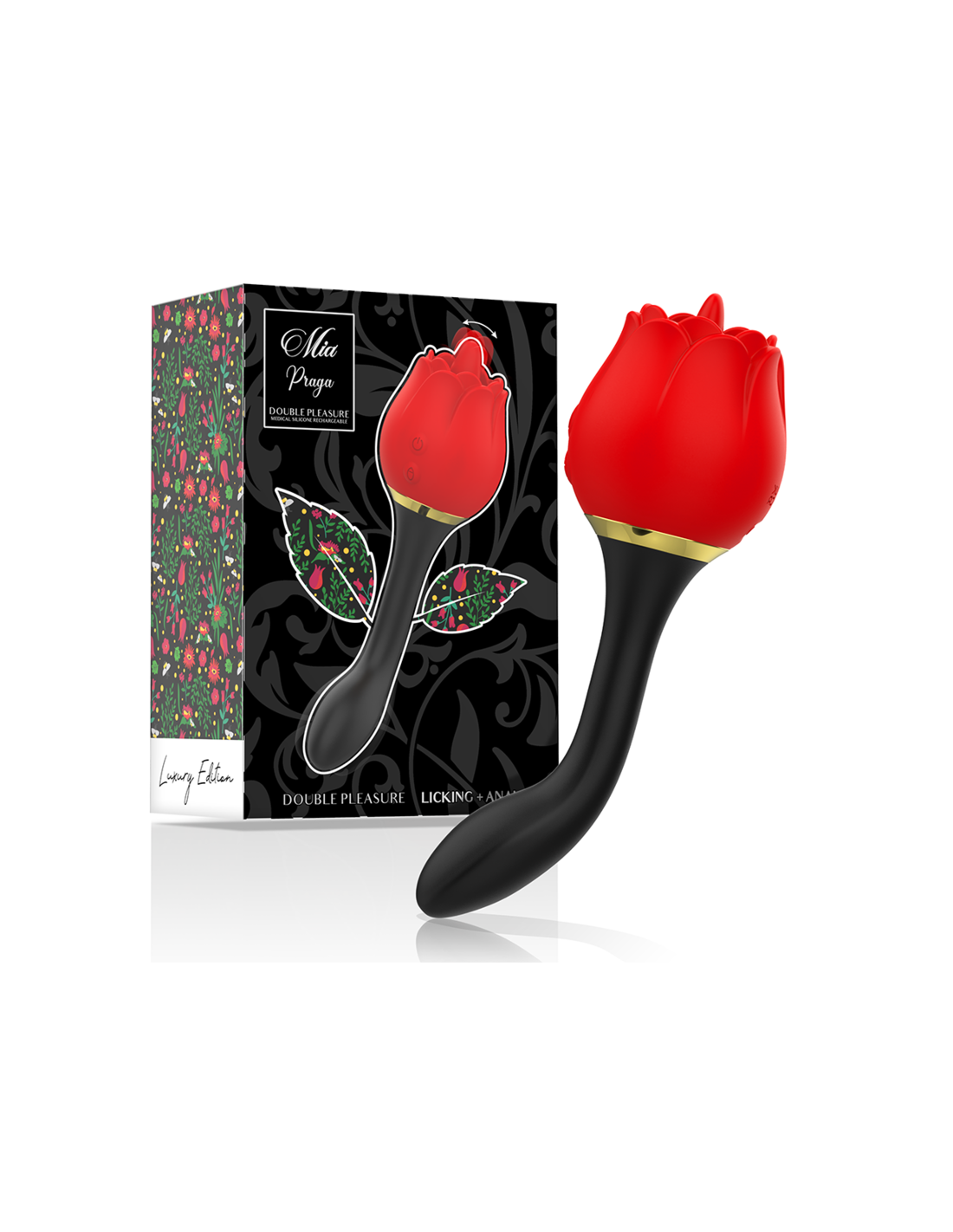 Žaismo būdai; Tvirtai įdėkite silikoninę rožę į delną. Uždėkite MIA DOUBLE PLEASURE ant klitorio ar kitų erogeninių zonų ir mėgaukitės giliomis vibracijomis. Išbandykite skirtingas aplinkas ir pozicijas, kad pritaikytumėte savo patirtį. Jis puikiai tinka klitorio stimuliavimui, o vibruojančią rankenėlę galite naudoti ir analinei sričiai. Dviguba ir galinga stimuliacija.