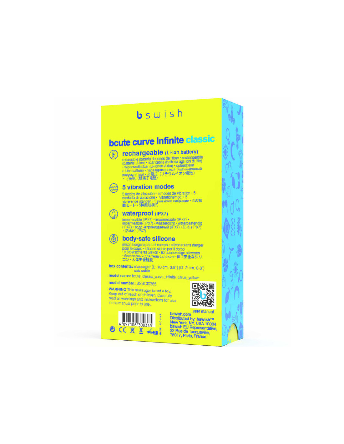 B SWISH - BCUTE CURVE INFINITE CLASSIC įkraunamas silikoninis vibratorius, geltonas