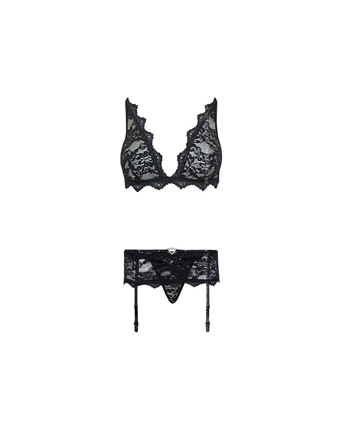 LIVCO CORSETTI SETSKomplektą sudaro liemenėlė, kelnaitės ir juostelės dirželis, kurie puikiai atrodys tiek lieknoms, tiek šiek tiek apvalesnėms figūroms. Komplekto kirpimas puikiai paslepia nedidelius kūno trūkumus aplink klubus ir pilvą. Liemenėlė džiugina neįprastomis petnešėlėmis ir jausminga nėriniu. Kelnaitės, savo ruožtu, puikiai formuoja moterų klubus ir uždegina jausmus. Komplektas pagamintas iš minkštos ir elastingos nėrinių medžiagos. Medžiaga maloni liesti, elastinga ir gerai priglunda prie kūno. Nėriniai nesibraižo ir nevaržo judesių, todėl galite išlaikyti visišką laisvę ir komfortą. Juoda medžiaga puikiai atrodo ant bet kokio odos atspalvio ir yra visiškai universali, tinka bet kokiai progai. KOMPLEKTĄ SUDARO 3 DALYS: LIEMENĖLE + KELNĖS + KELNIŲ JUOSTA; KELNĖS NĖRA ĮTRAUKTOS.
