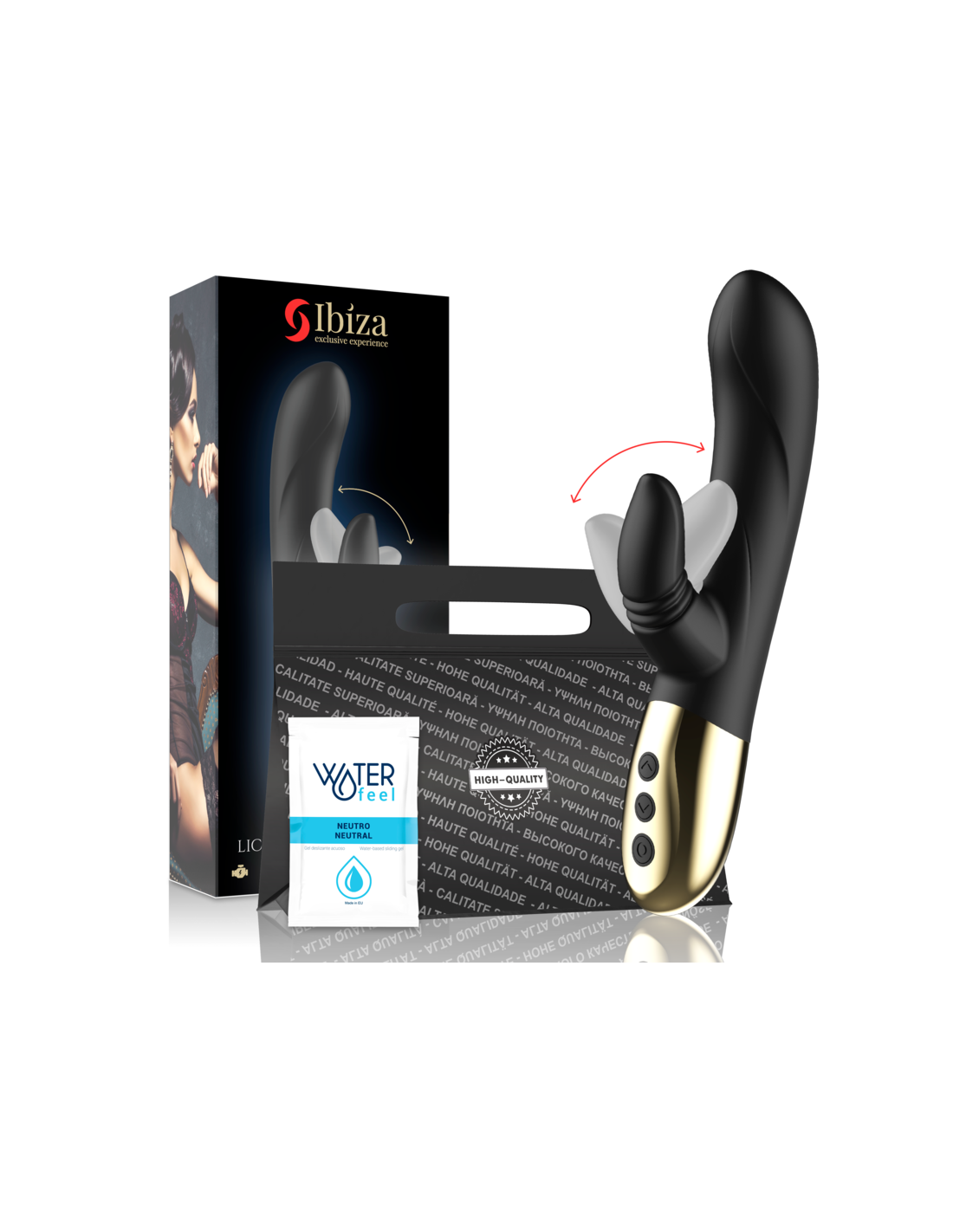 Kalbant apie patogumą transportuojant ir diskretiškumą, „Ibiza“ pradeda nuo inovacijų, nes mes taip pat manome, kad tai yra labai svarbi erotinio žaislo pirkimo patirties dalis. Pirkdami žaislą iš „Ibiza“, gausite aukščiausios kokybės dėžutę su juodu nešiojimo maišeliu viduje, kuriame rasite žaislą, įkroviklį ir vienkartinės dozės „Waterfeel Neutral“ lubrikanto paketėlį, kad klientui pirmoji patirtis būtų kuo malonesnė ir jis galėtų diskretiškai pasiimti žaislą kur tik nori.