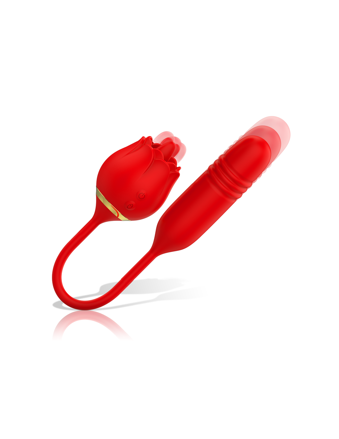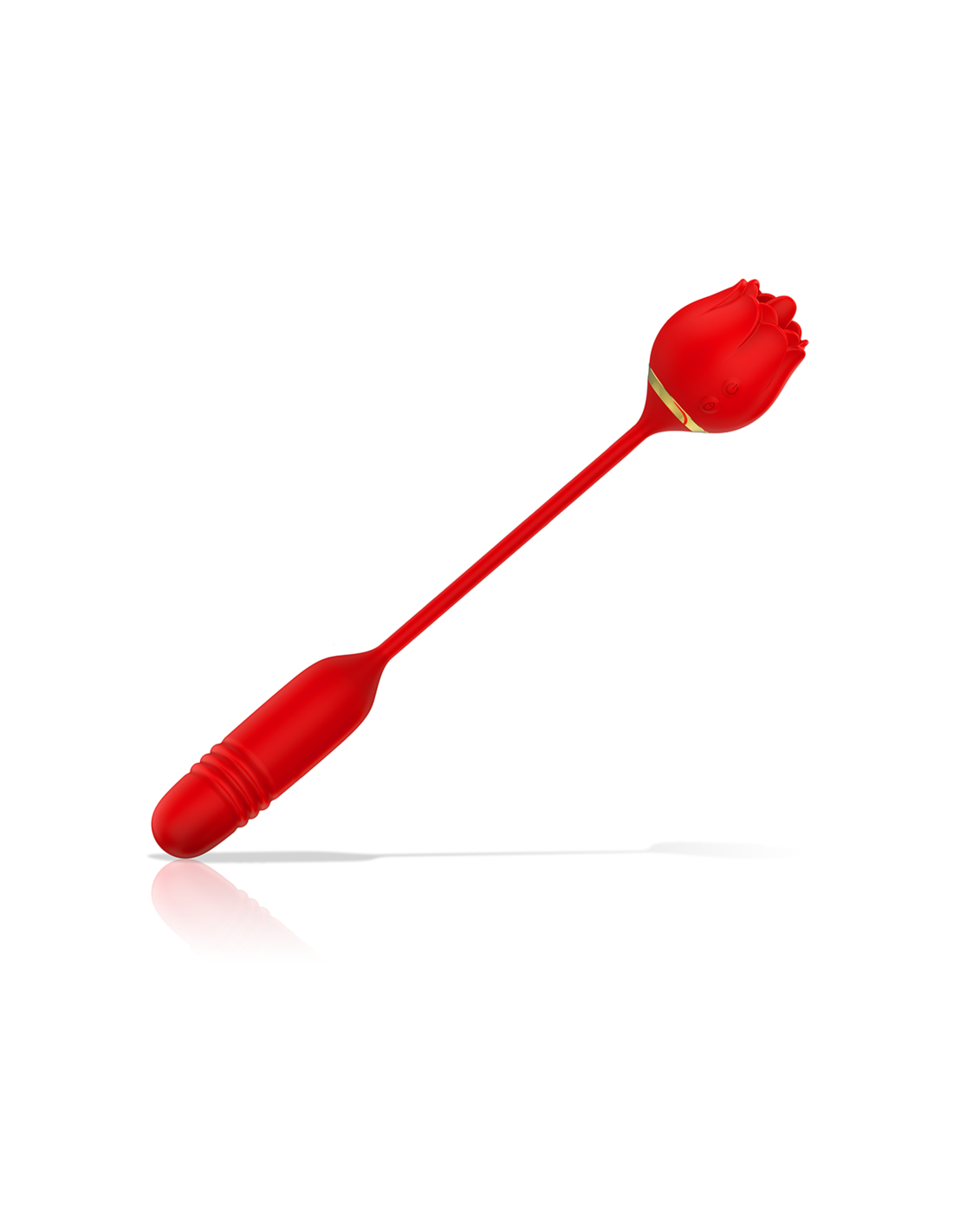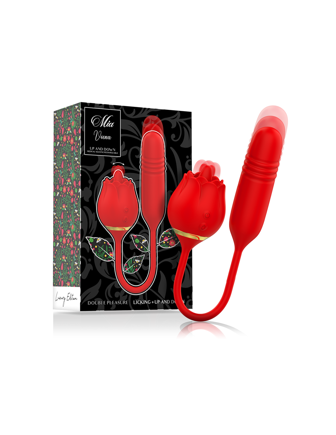 Pakilk į viršūnę! MIA DOOBLE PLEASURE LICKING – rožės formos vibratorius su labai seksualiu antgaliu, kuris susidoros su visomis lytinių organų viršūnėmis. Su apvaliu 100 % silikoninio stimuliatoriaus antgaliu, cirkuliuojančiomis vibracijomis ir iš viso 10 vibracijos derinių palepinkite visas savo erogenines zonas, tokias kaip klitoris, lytinės lūpos ar speneliai, galite tai daryti kelyje! Tokiu būdu vibratorių su antgaliu galima diskretiškai transportuoti ir keliaujant, jis visada džiugina jus savo absoliučiu universalumu.