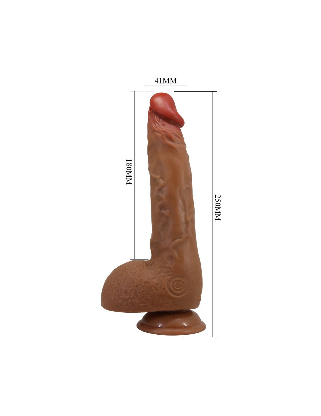 Mėgaukitės vibracija ir sukimosi malonumais! Šis tikroviškas dildas išsiskiria nepaprastai intensyviu besisukančiu stūmimu ir vibracijos funkcijomis, veikiančiomis skirtingais režimais. Dėl tikroviškų, ryškių varpos galvutės, venų ir sėklidžių jis jaučiasi beveik kaip tikras. Siurbimo taurelė leidžia mėgautis malonumu nenaudojant rankų.